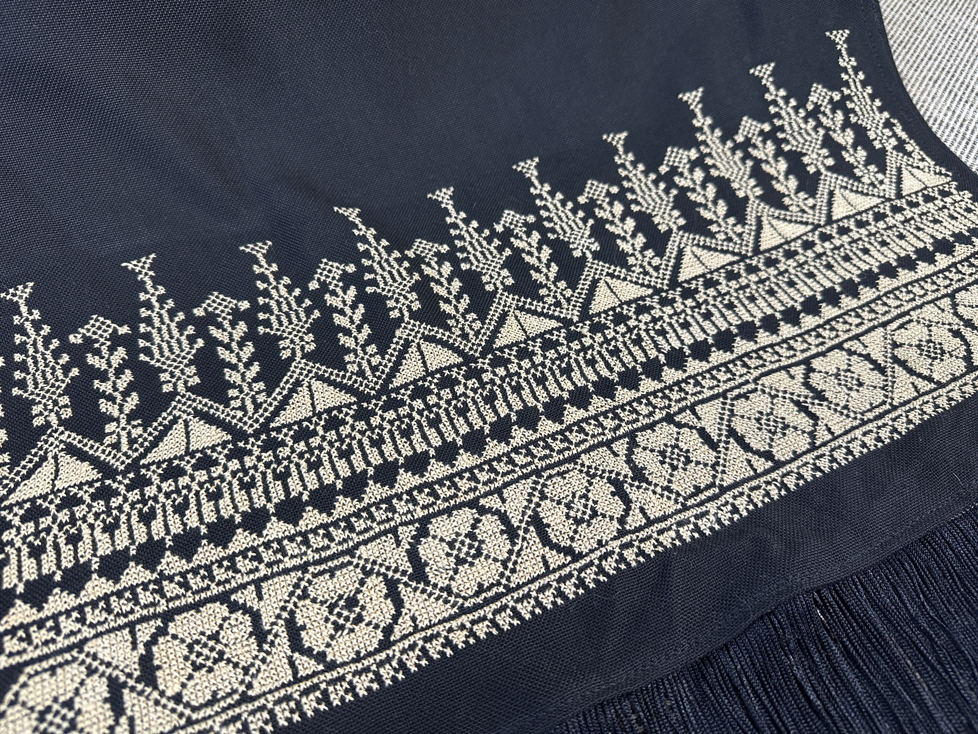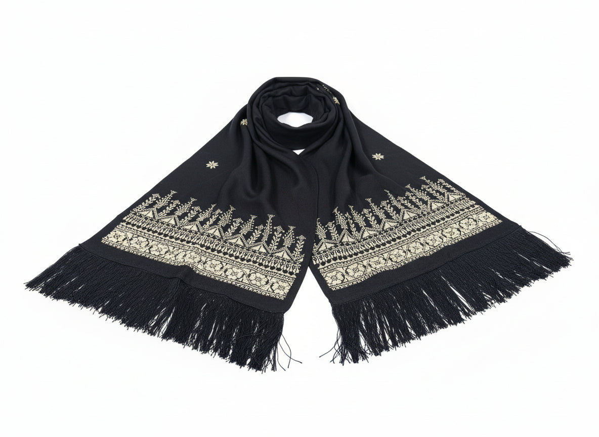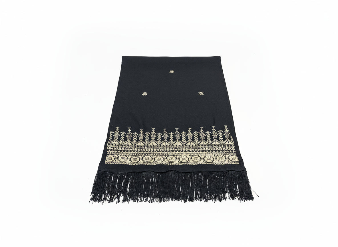 Hand Embroidered Black Shawl - Cream