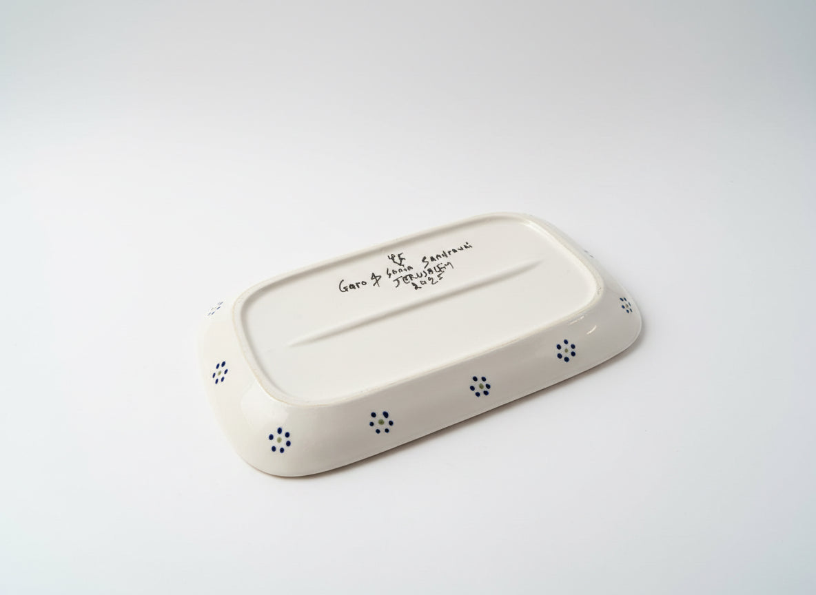 Hand-painted ceramic bowl with an intricate design by Jerusalem-based Armenian ceramic studio of Garo and Sonia Sandrouni.