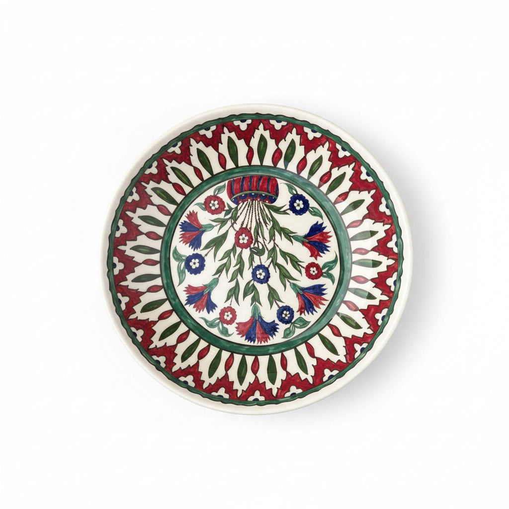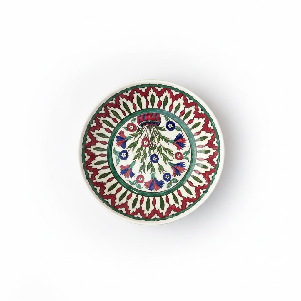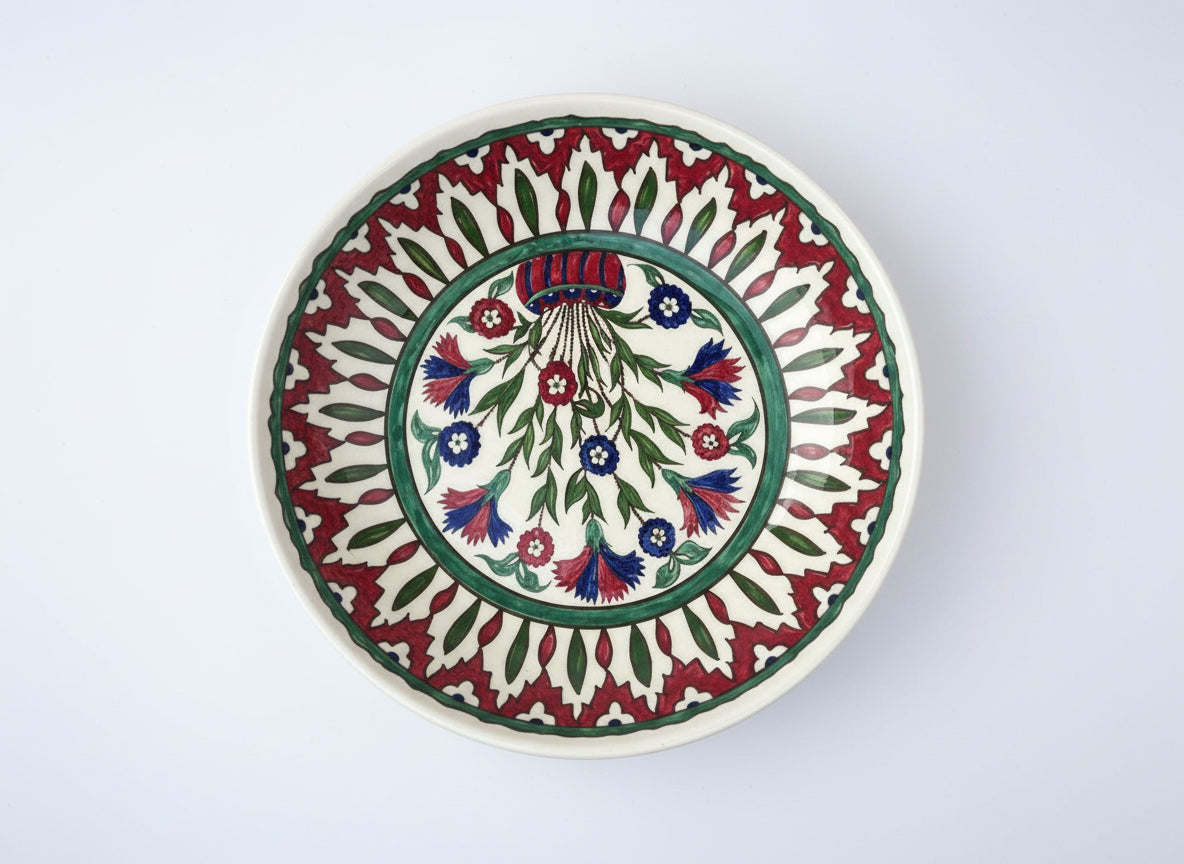 Hand-painted ceramic bowl with an intricate floral design by Jerusalem-based Armenian ceramic studio of Garo and Sonia Sandrouni.