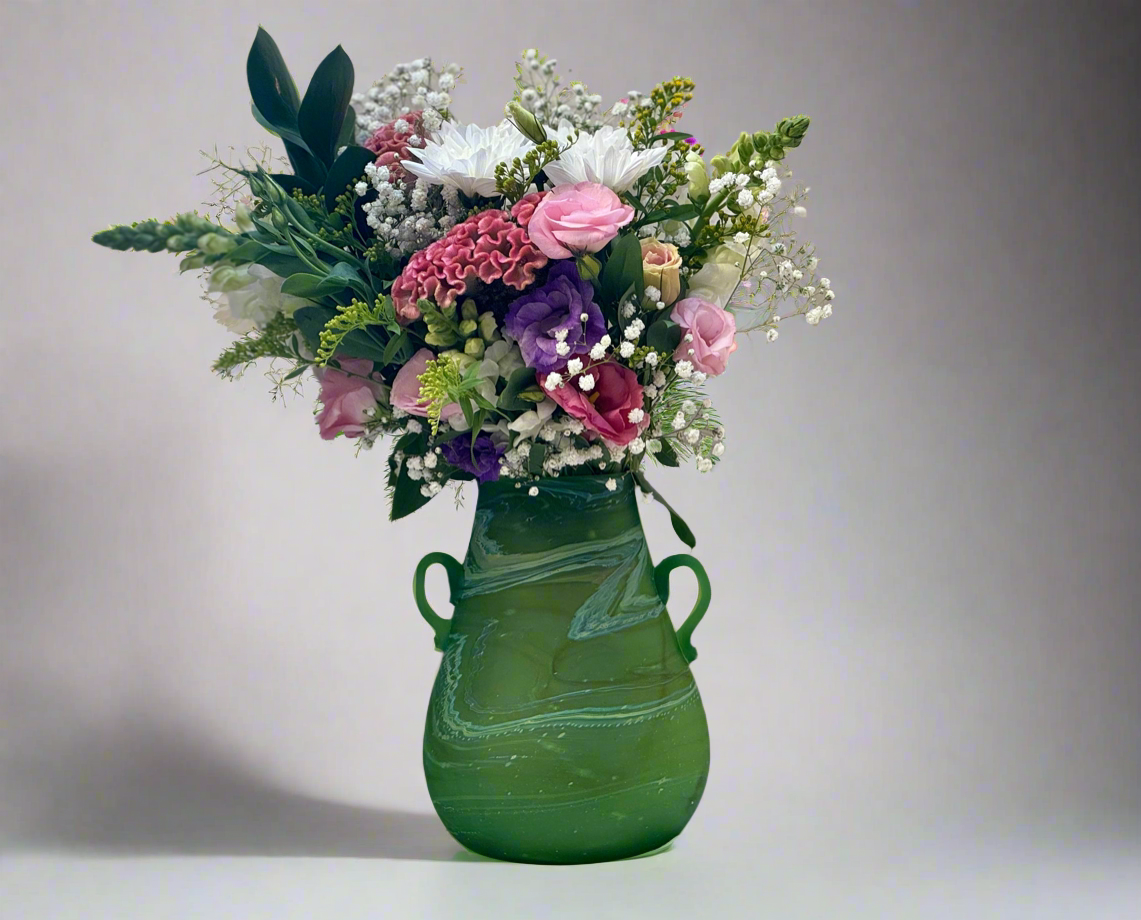 Handblown Phoenician Green Vase with Handles