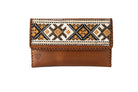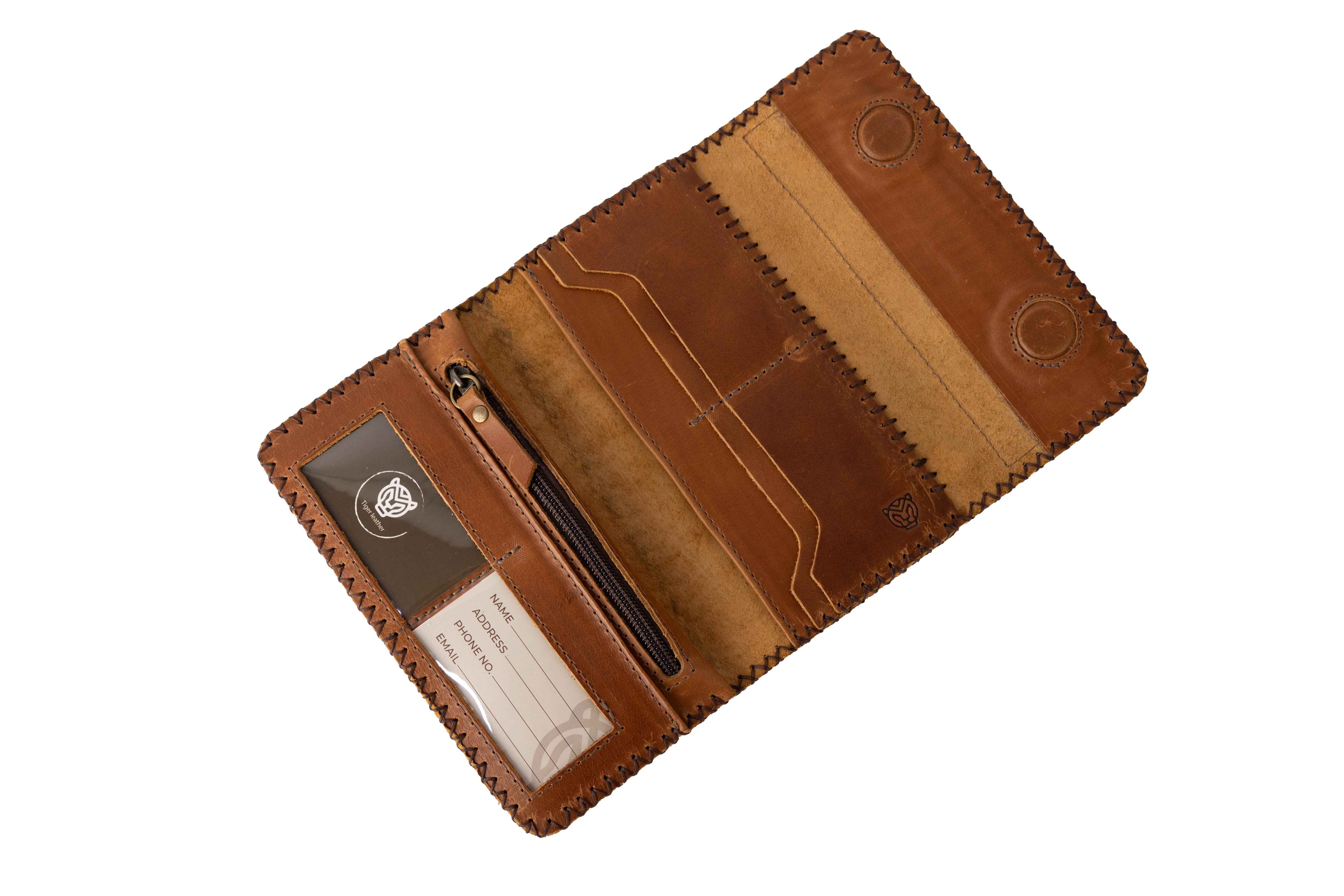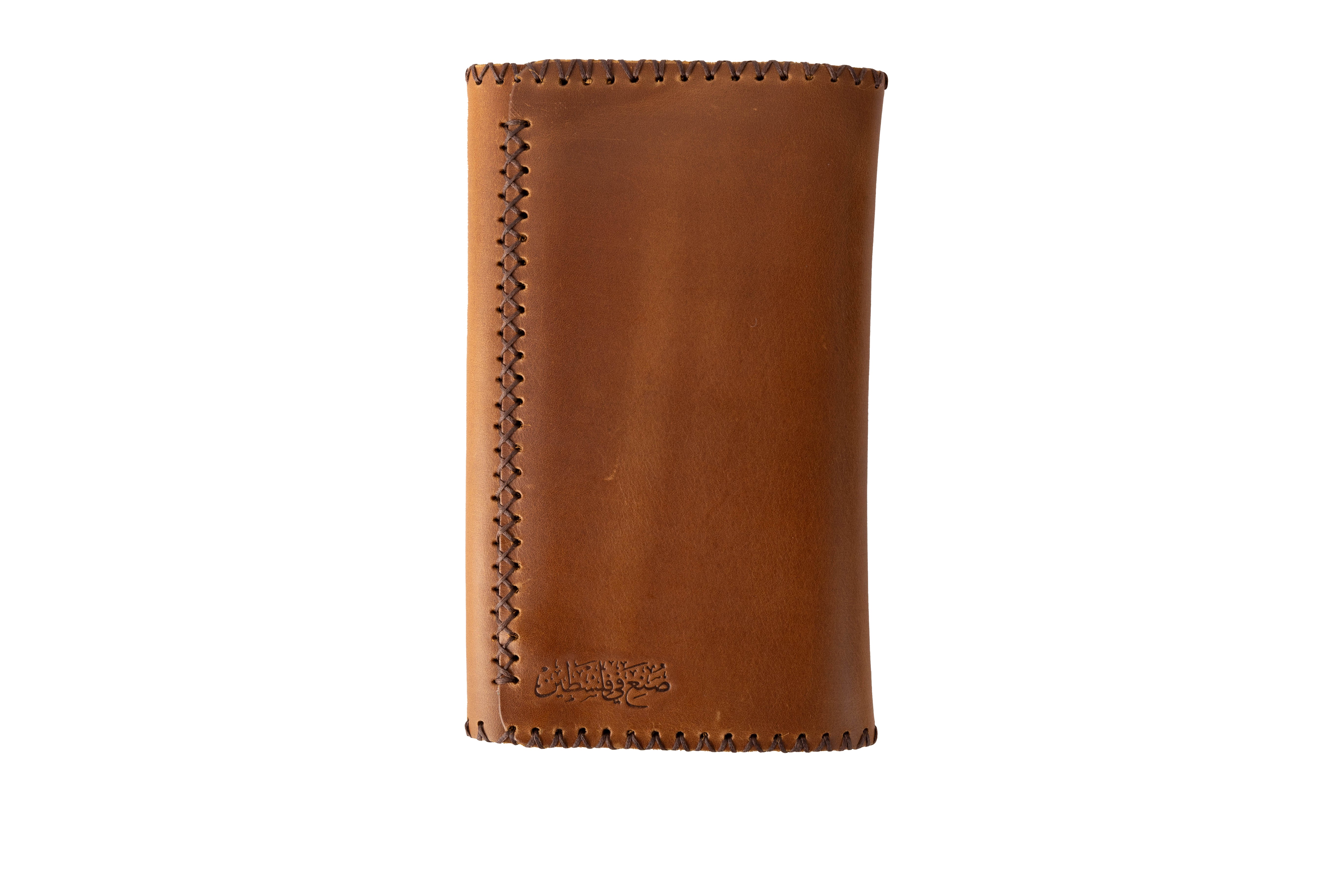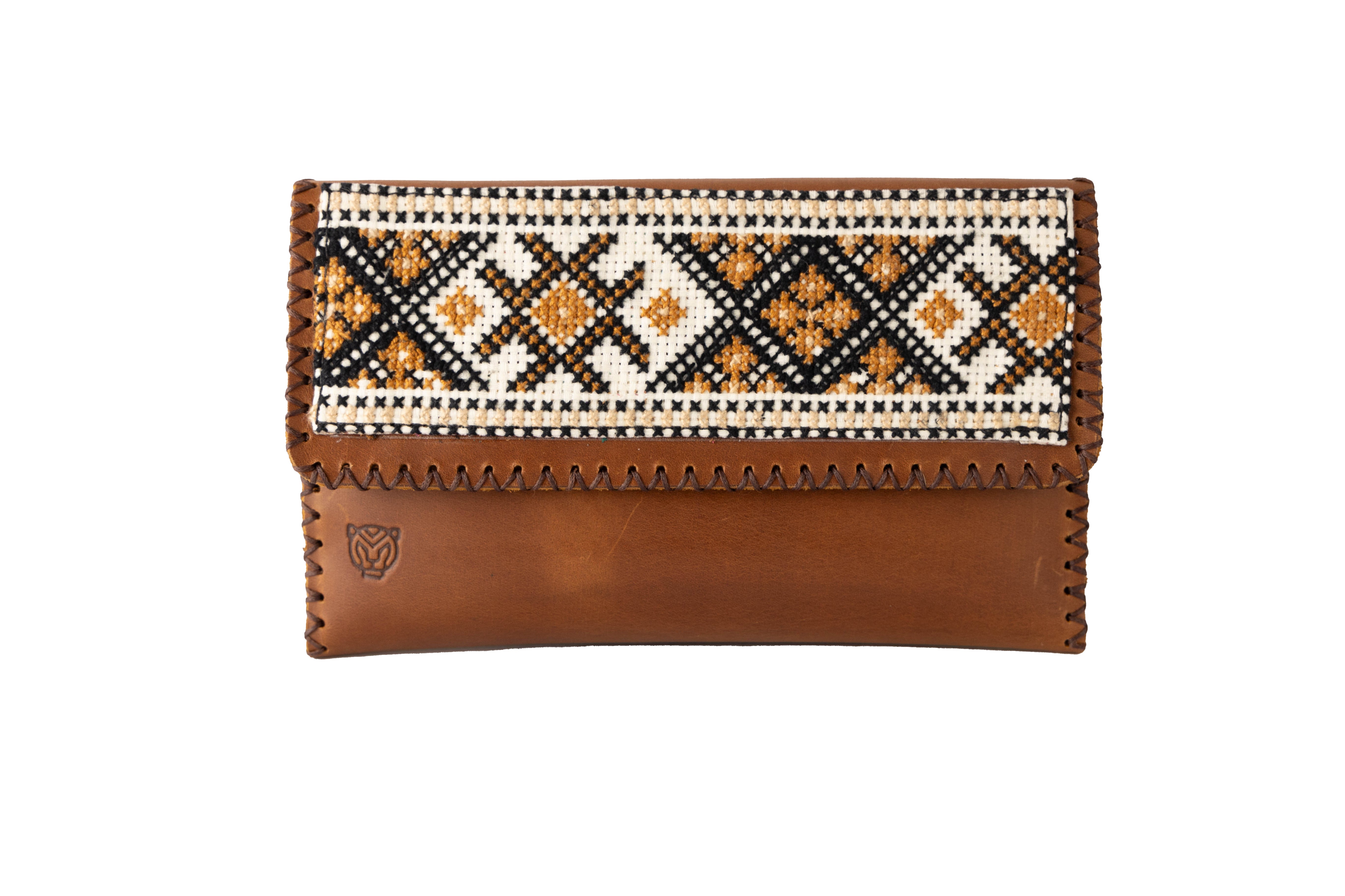 A handcrafted, leather wallet featuring beautiful hand embroidered motif. Made from 100% genuine leather & hand embroidered on the front side of the wallet all made in Hebron, this artisanal piece showcases quality craftsmanship. It also comes with a matching small pouch for extra versatility.