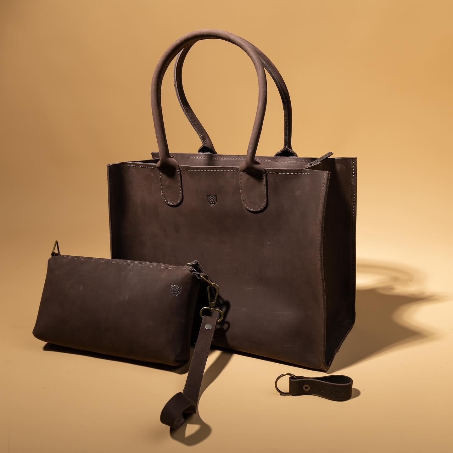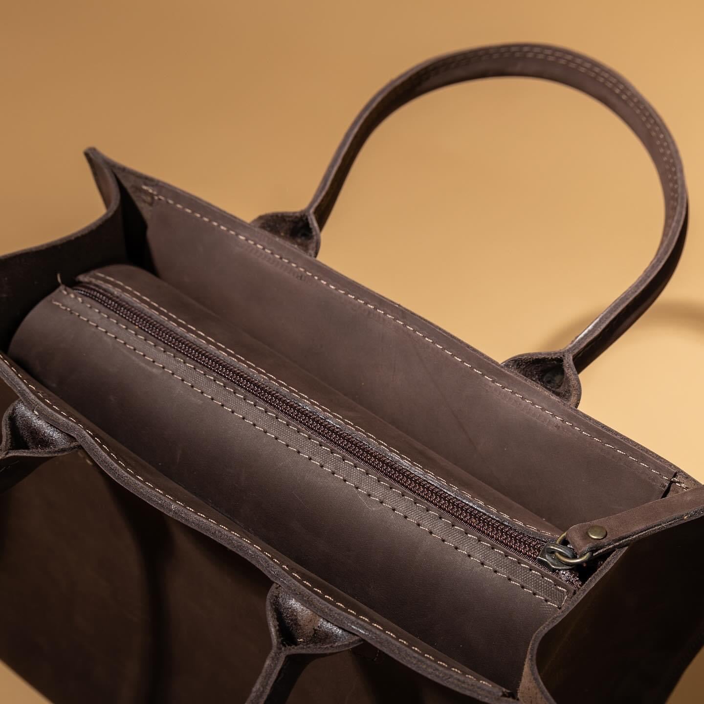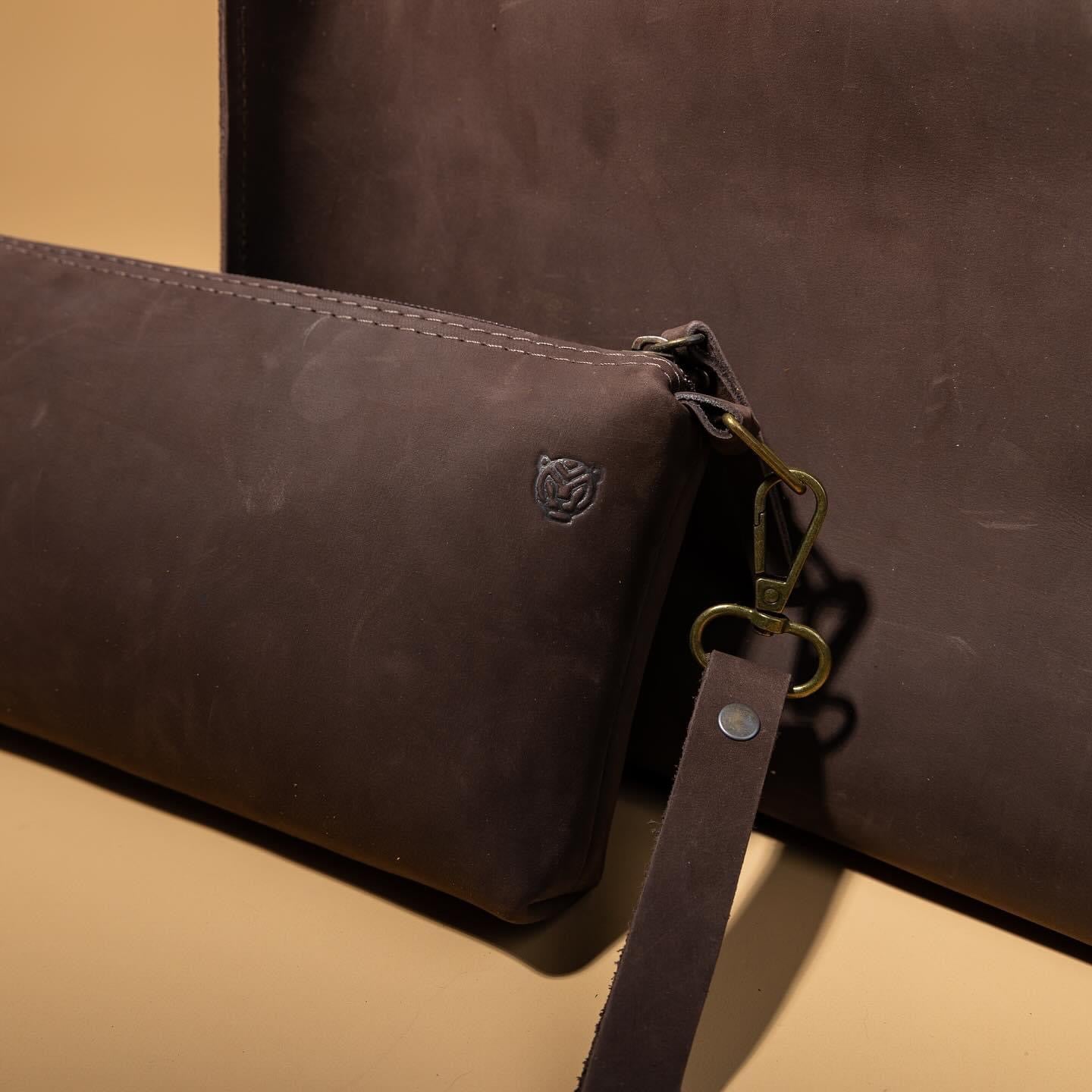 A handcrafted, medium-sized leather bag featuring both a secure zip and magnetic closure for added convenience. Made from 100% genuine leather in Hebron, this artisanal piece showcases quality craftsmanship. It also comes with a matching small pouch for extra versatility.