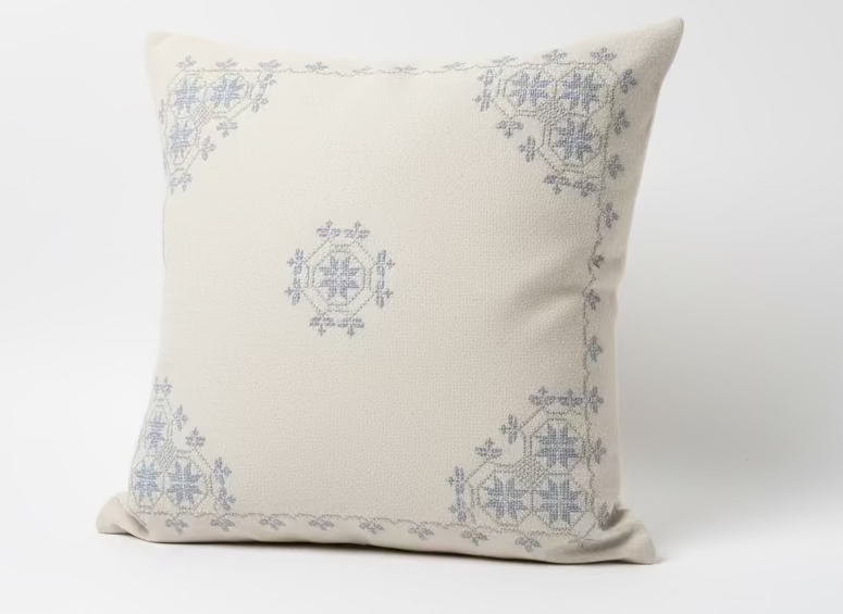 This beautiful cushion cover hand embroidered with traditional Canaanite star motif by the skilled women artisans in Surif comes in several different colors