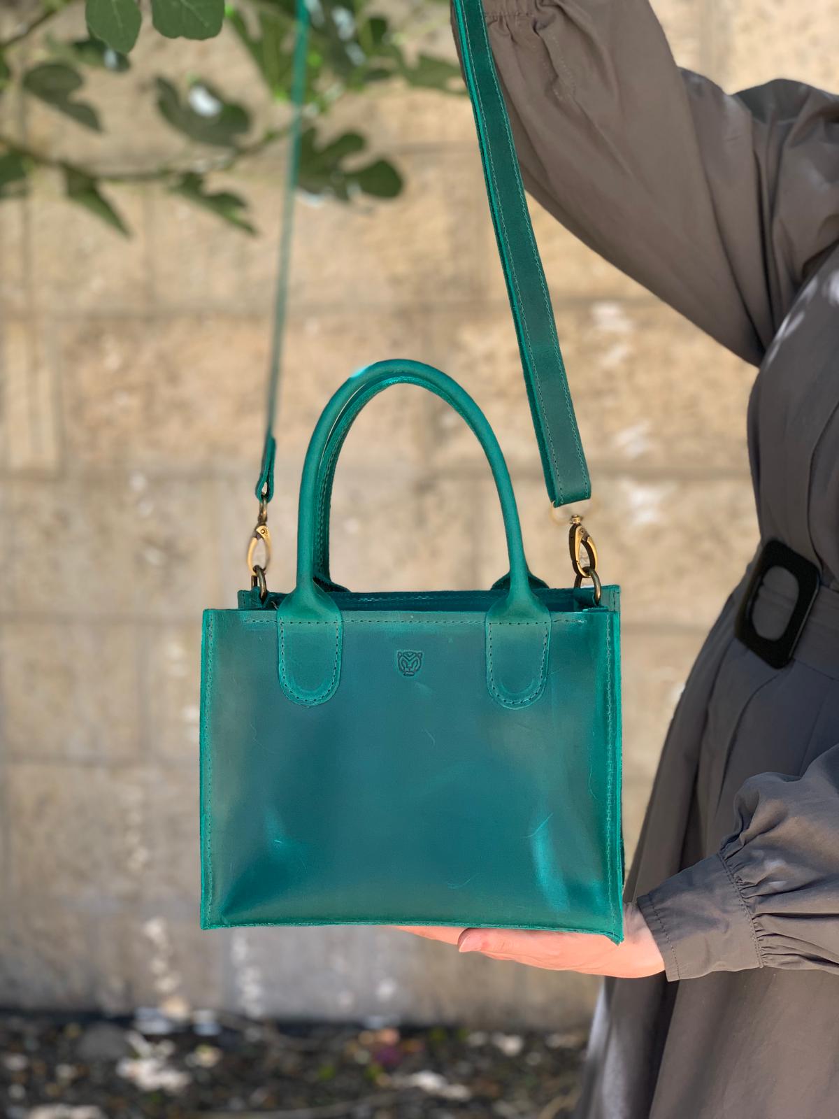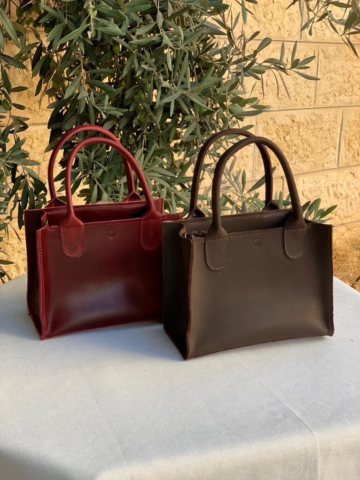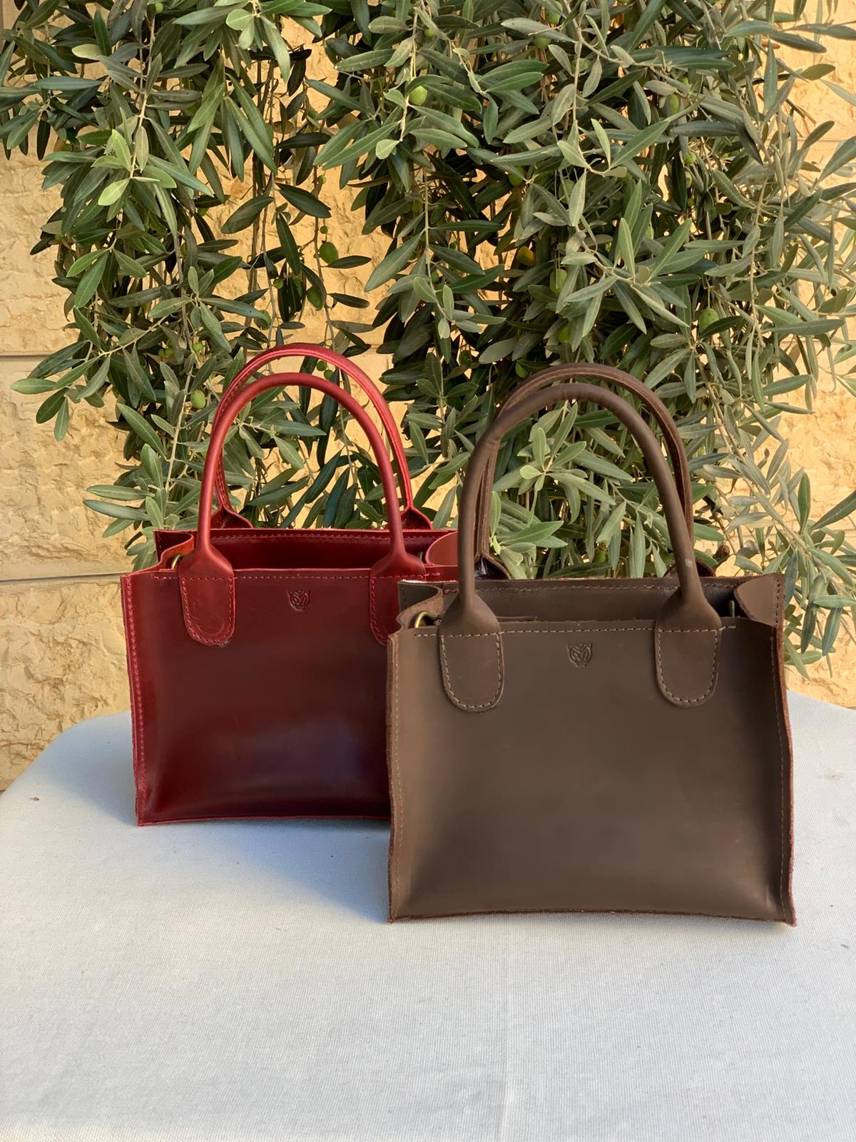 A handcrafted, mini handbag made from 100% genuine leather in Hebron, this artisanal piece showcases quality craftsmanship. Equipped with a durable zipper to keep your belongings secure, along with a long, detachable, and adjustable strap.