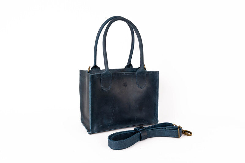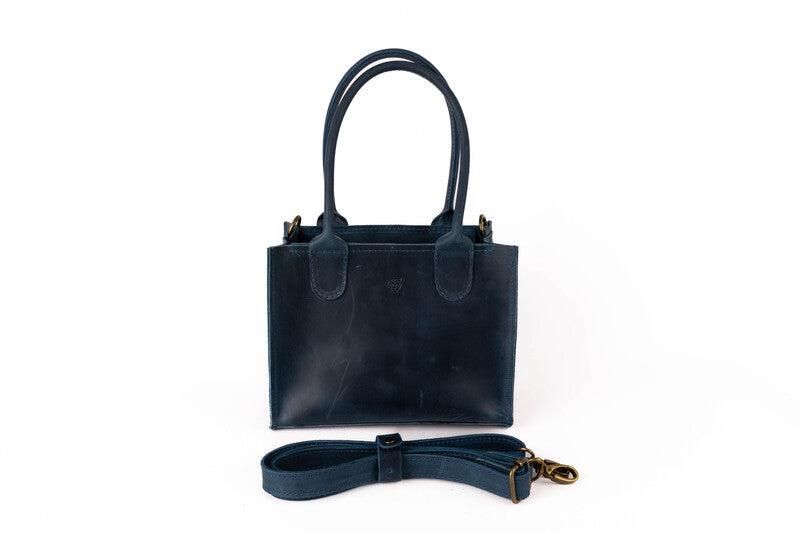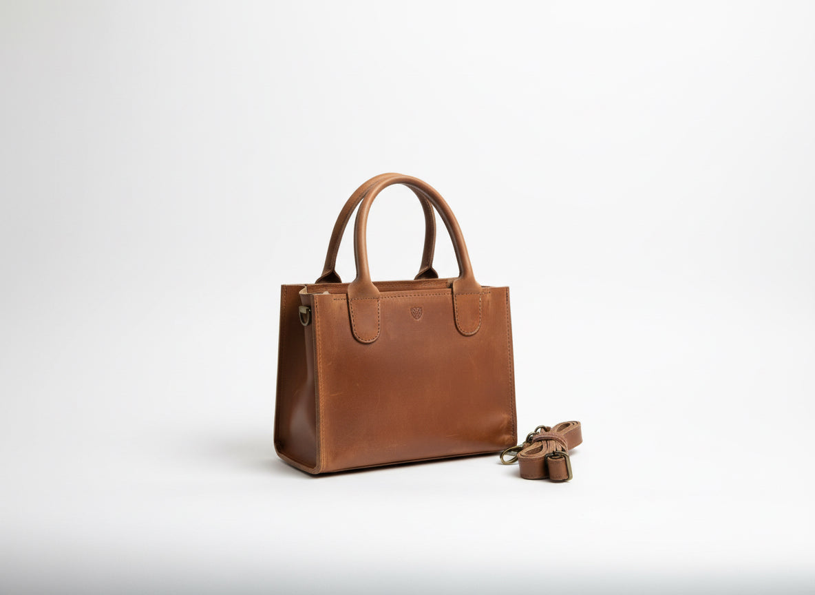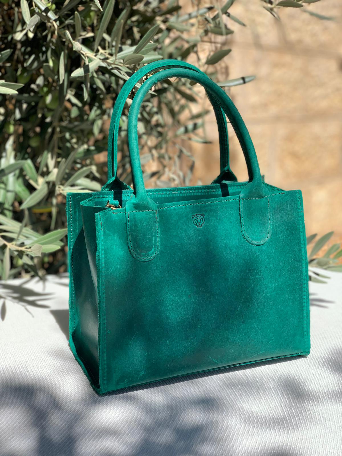A handcrafted, mini handbag made from 100% genuine leather in Hebron, this artisanal piece showcases quality craftsmanship. Equipped with a durable zipper to keep your belongings secure, along with a long, detachable, and adjustable strap.