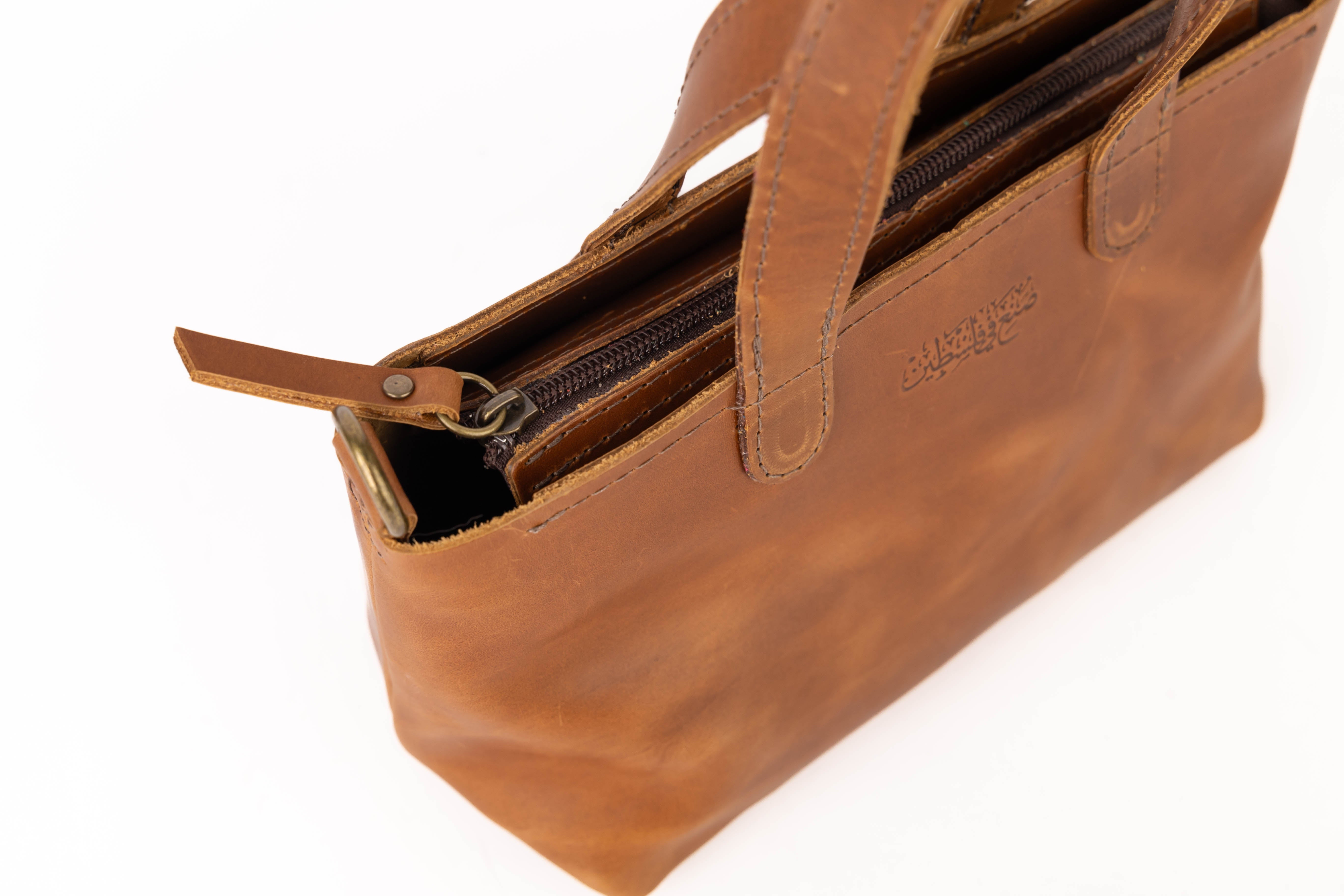 A daily tote bag crafted from 100% genuine leather, combining timeless style with practical design. Its spacious interior makes it the perfect companion wherever your day takes you.