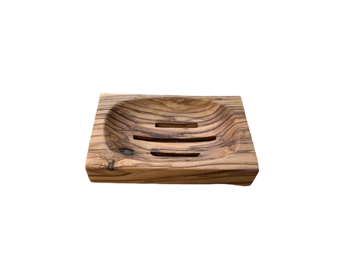 Hand carved olive wood soap dish from a family run carpentry workshop near Bethlehem.
