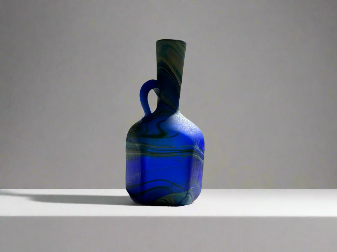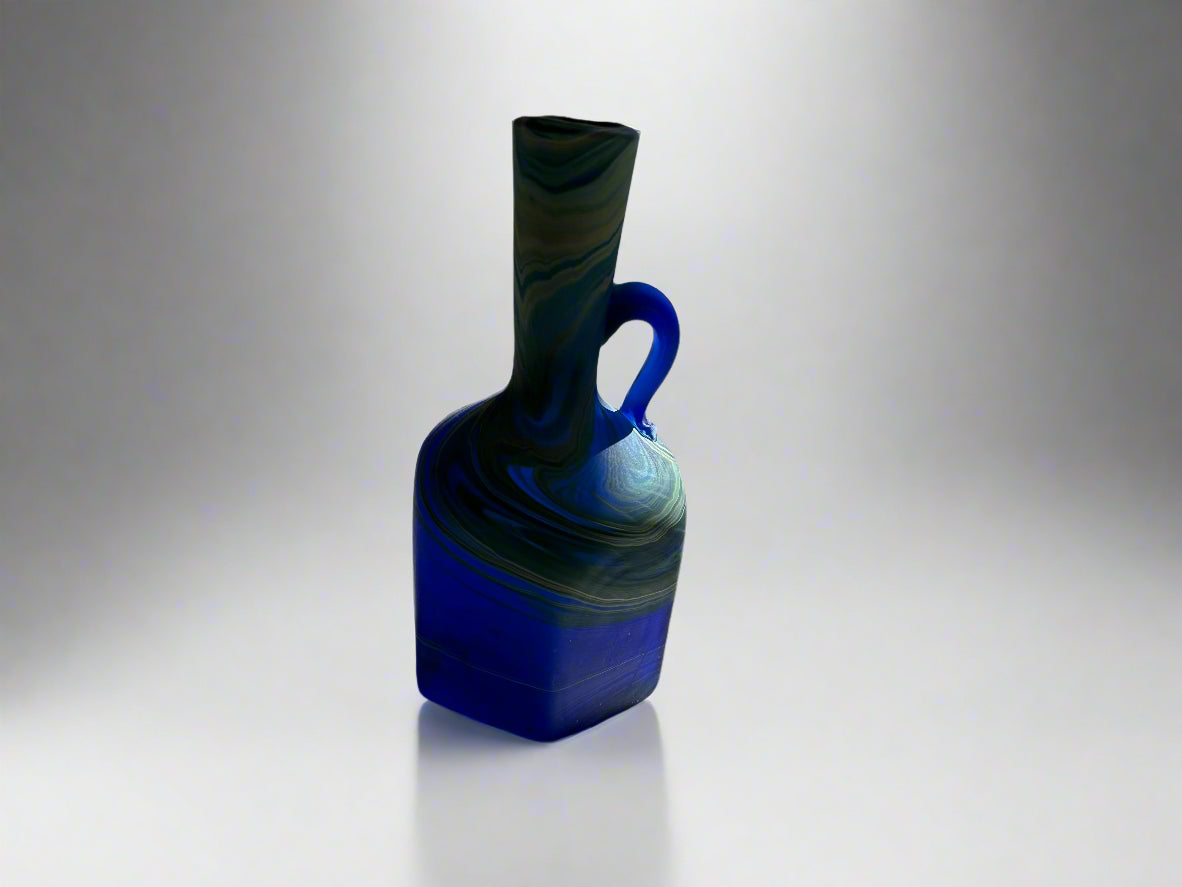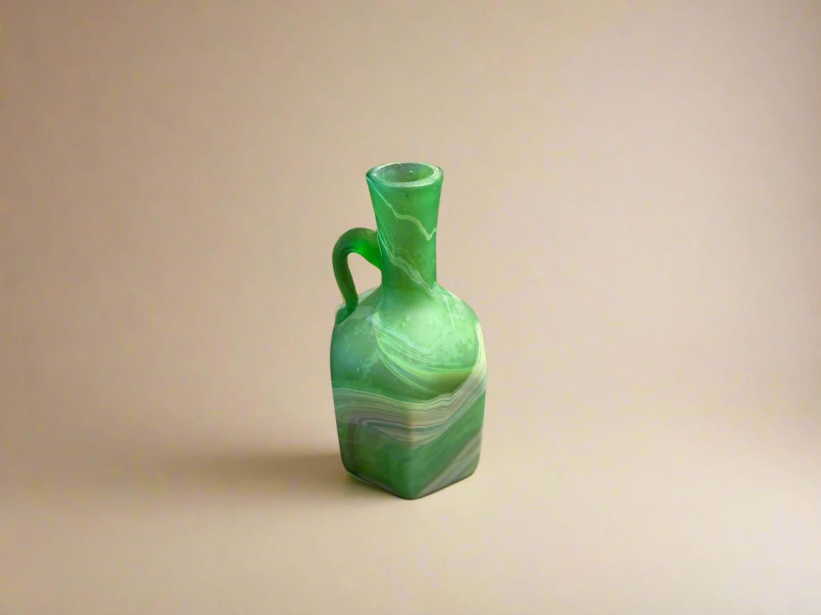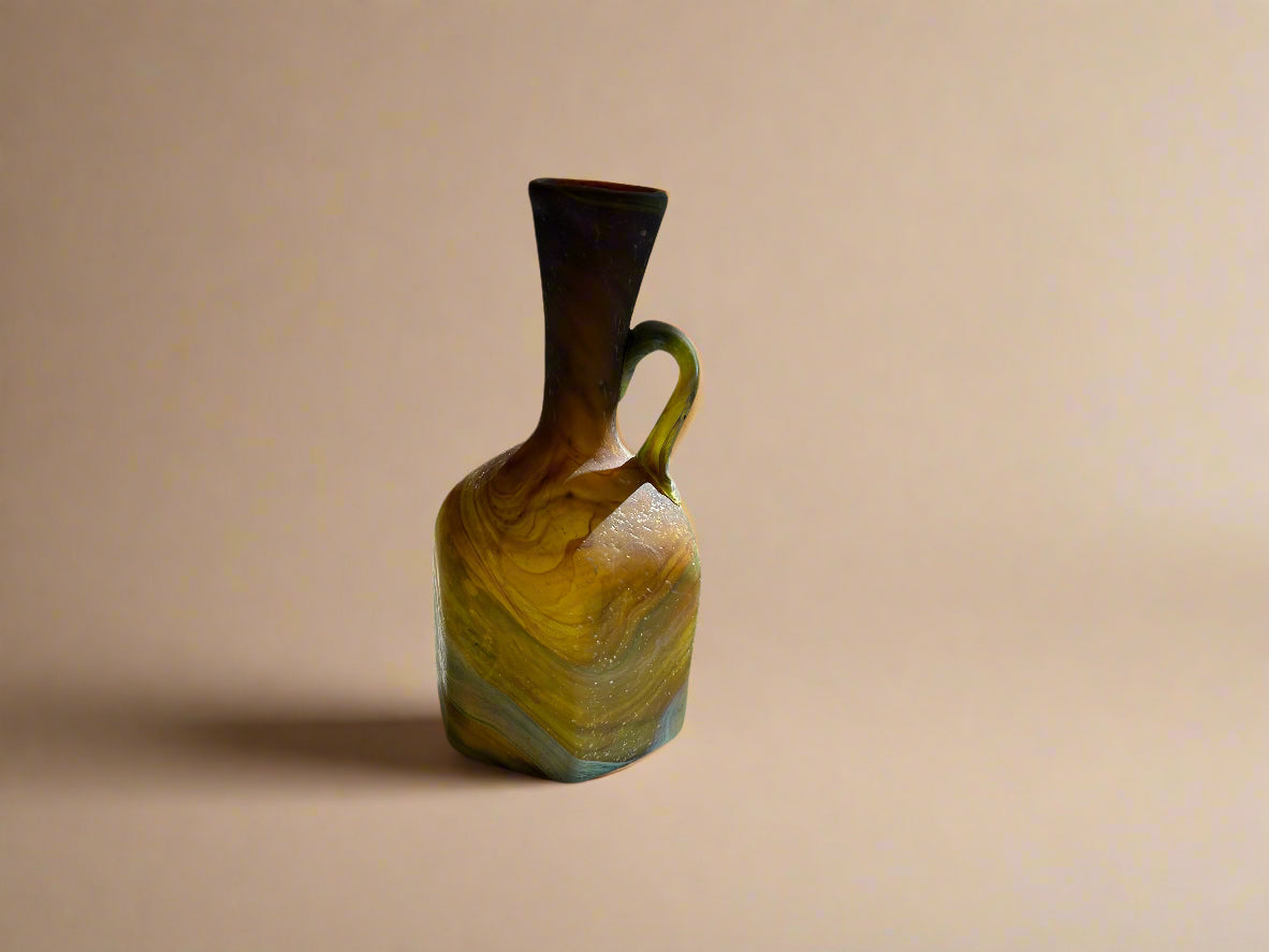 Discover our collection of beautiful handblown Phoenician vases with a handle made in Palestine. Hebron glass makers use Phoenician glass-blowing techniques, reminiscent of sea glass, to create their wares, honoring a centuries-old tradition in the region of the modern-day West Bank.