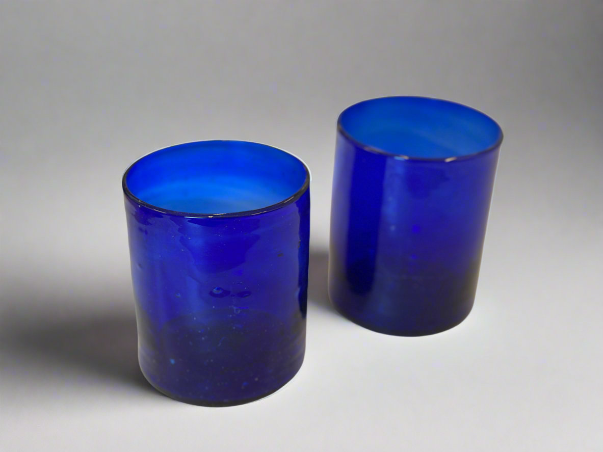 Handblown Hebron Wide Glass Cups - Cobalt Blue (set of 2)