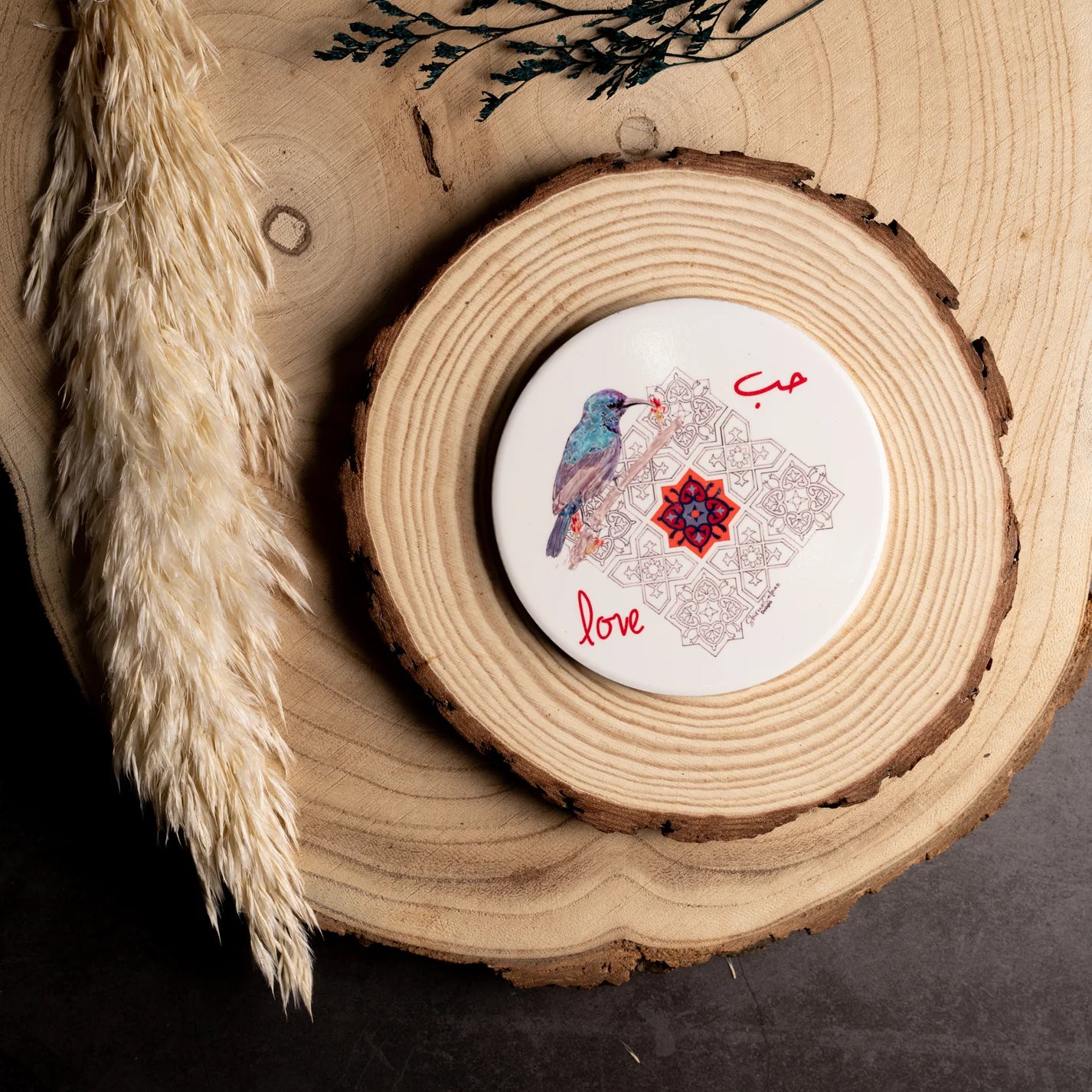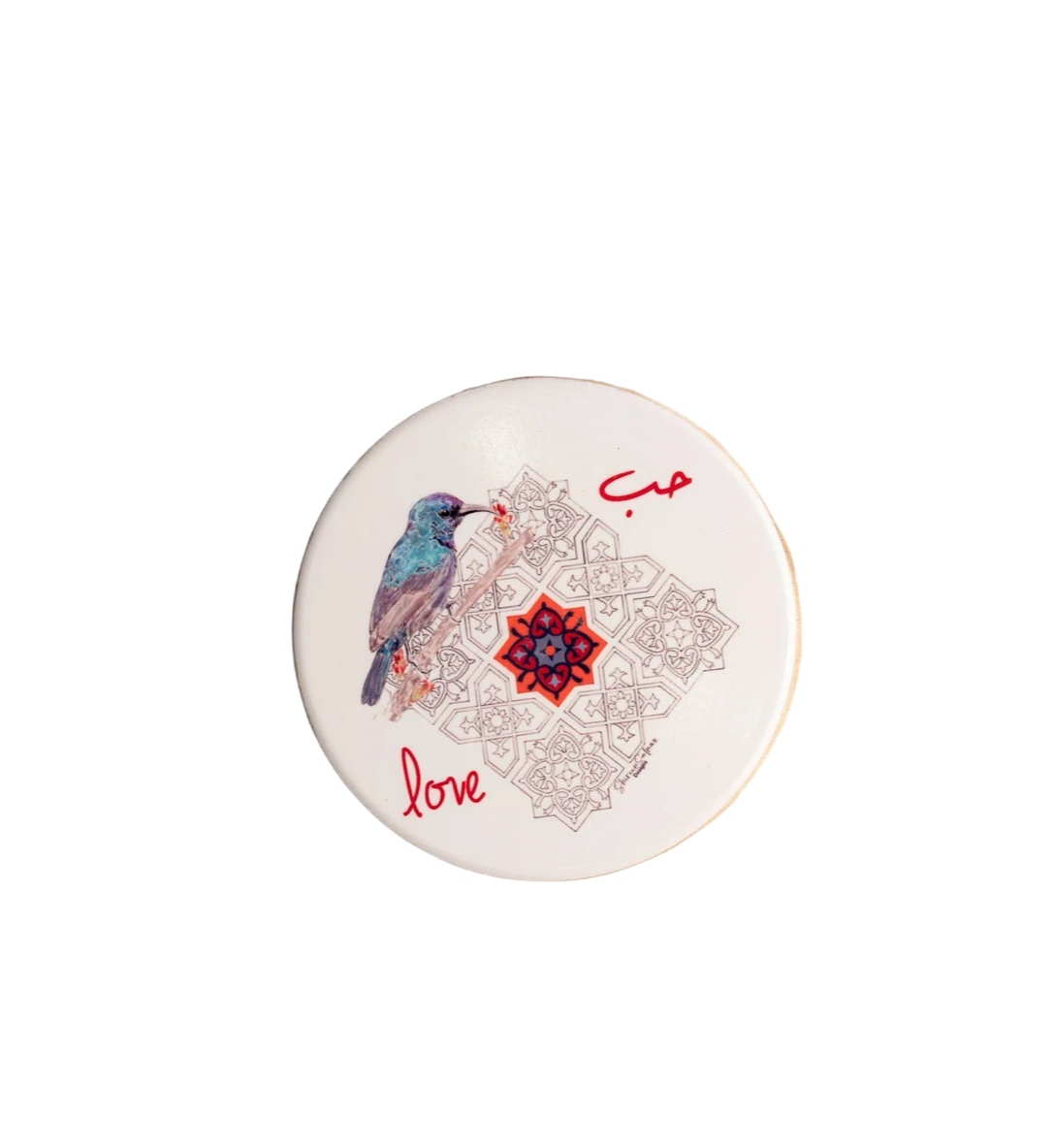 These coasters combine geometric patterns and symbolic natural motifs, including plants, spring flowers, the Palestinian sunbird, and seasonal regional fruits. These designs not only celebrate the natural beauty of the region but also preserve a deep connection to its cultural heritage.