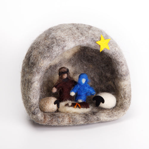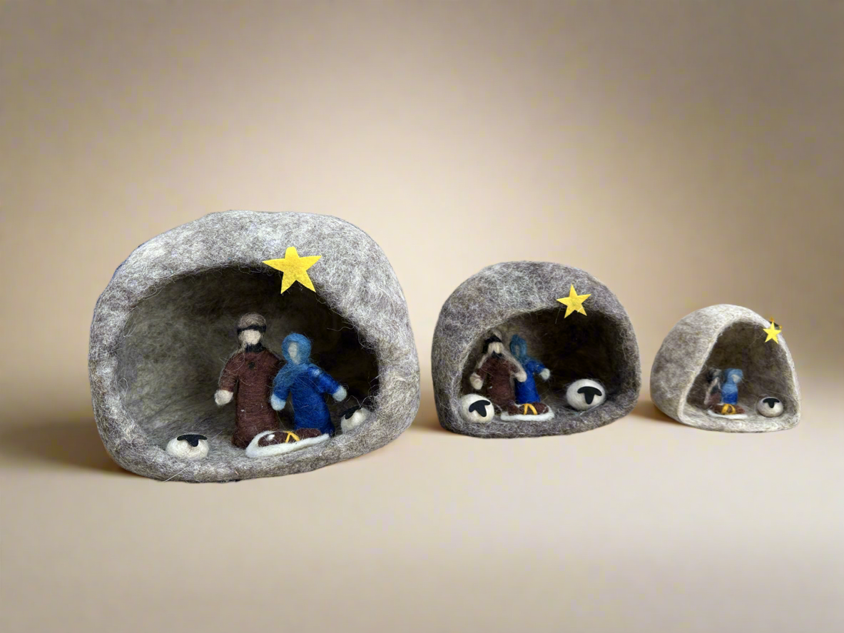 Handmade 100% natural sheep wool nativity grotto sourced from a local shepherdess.