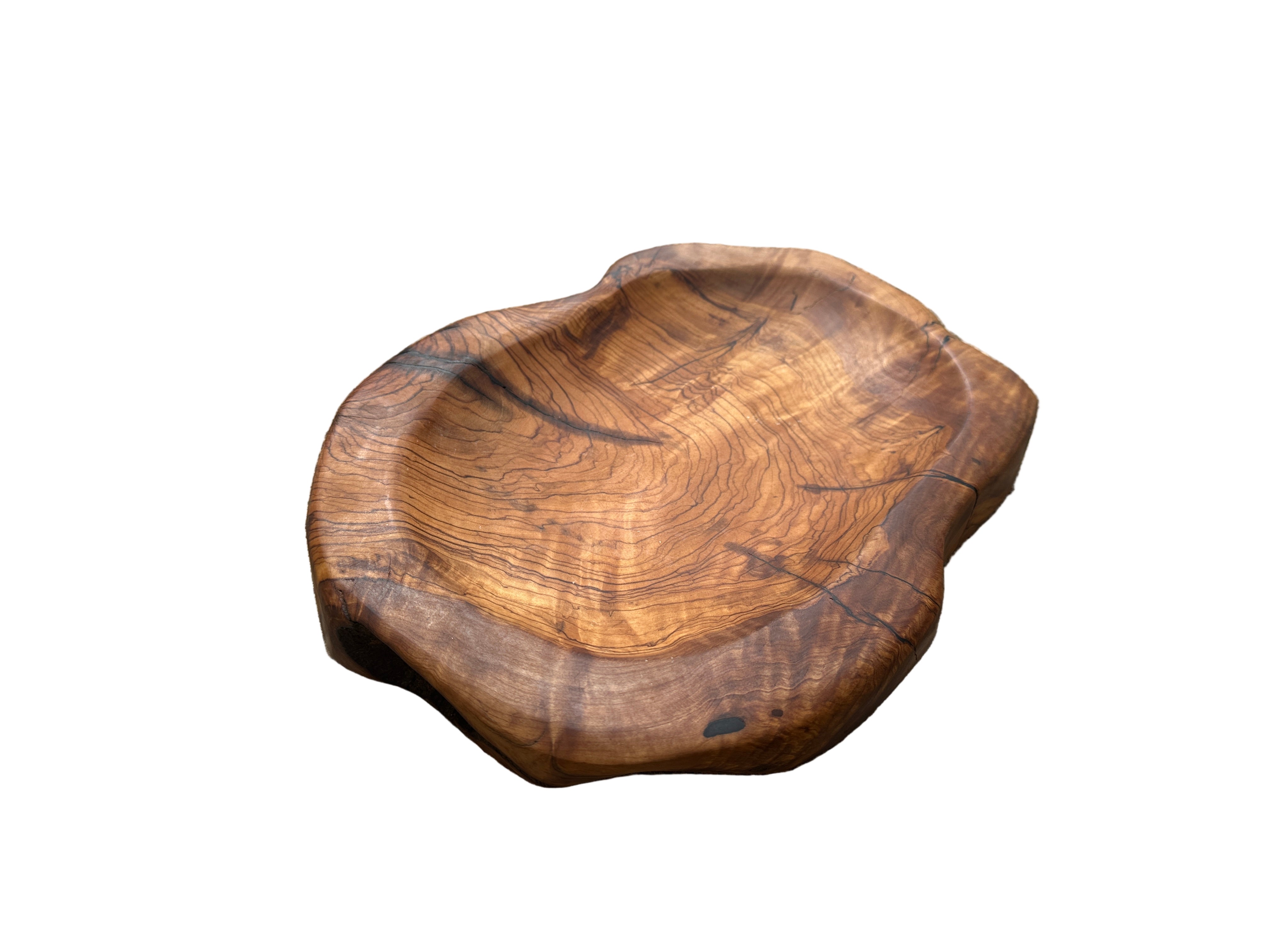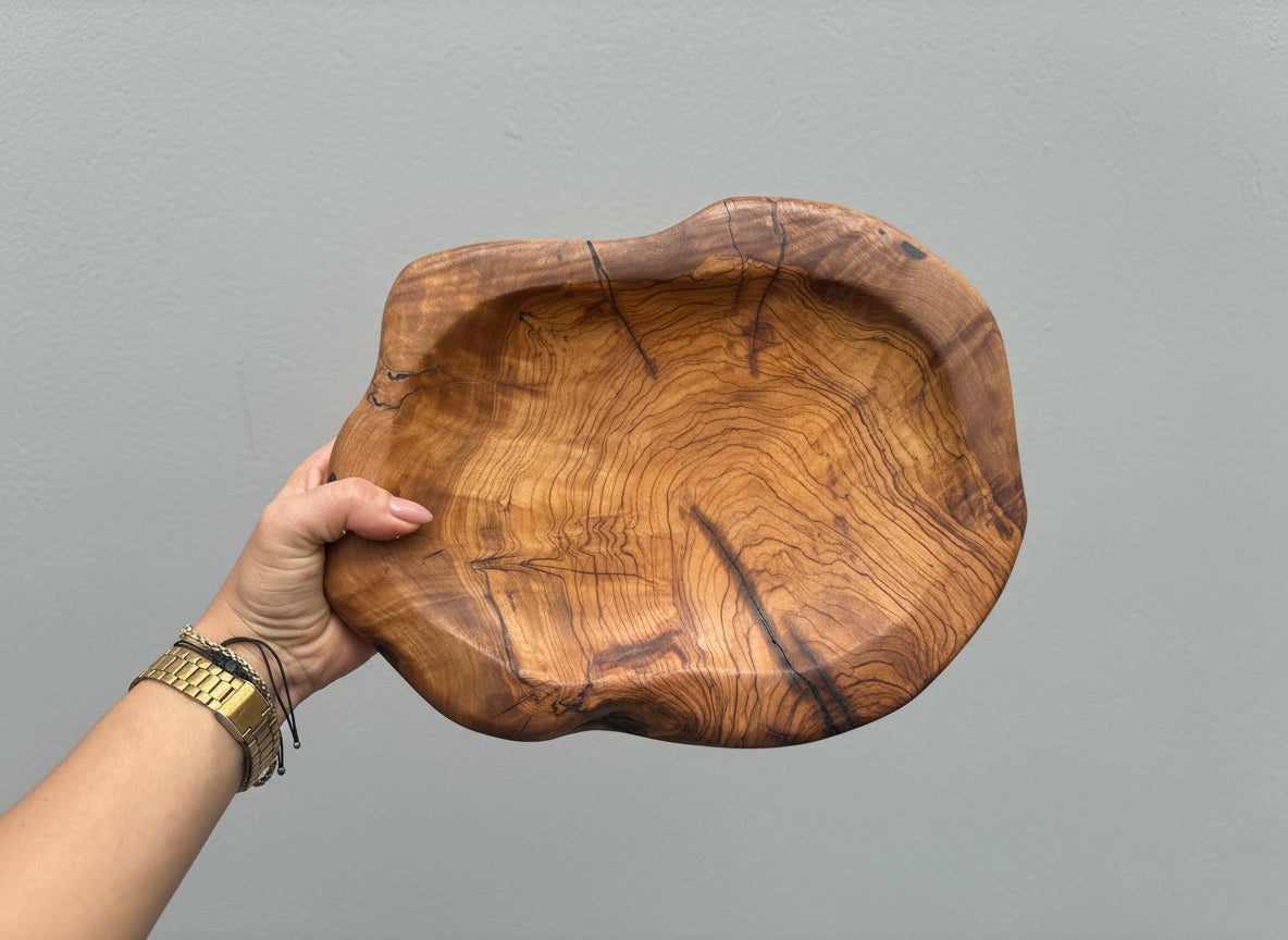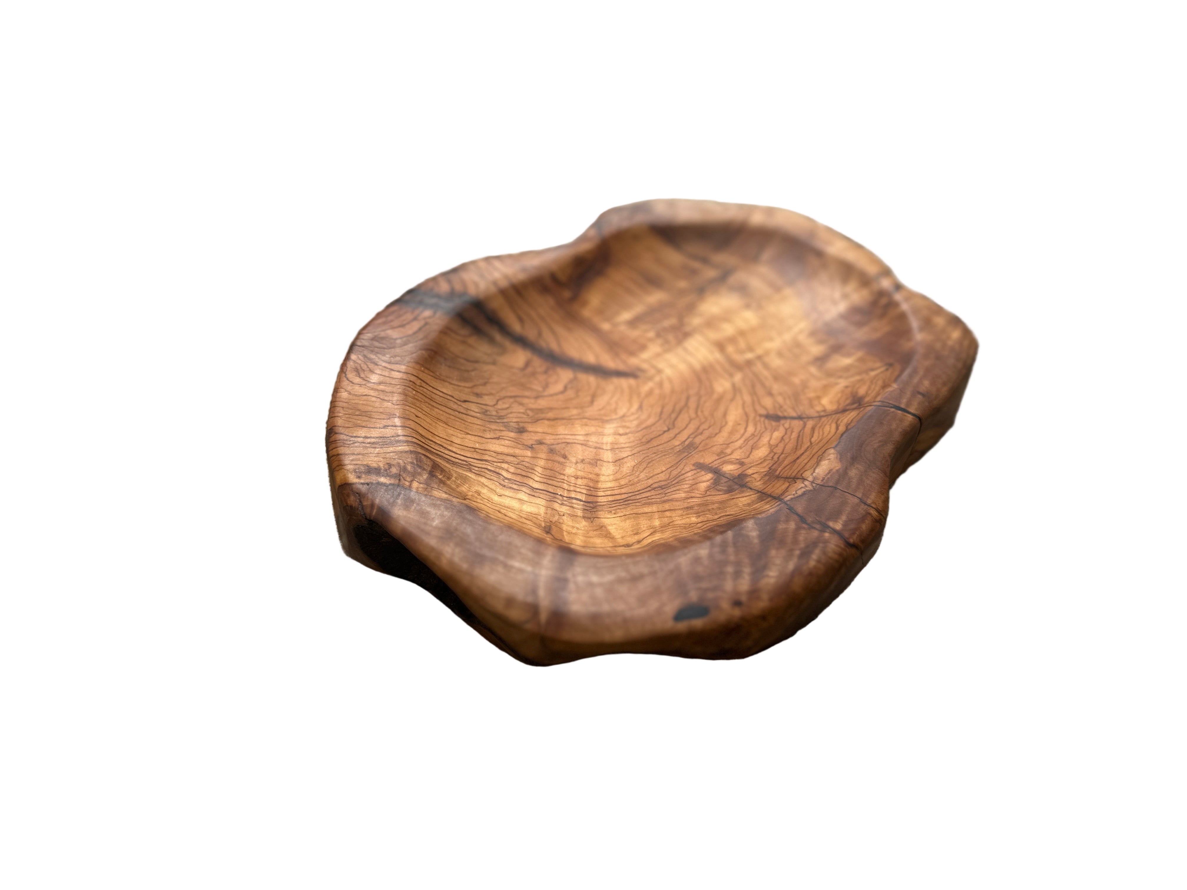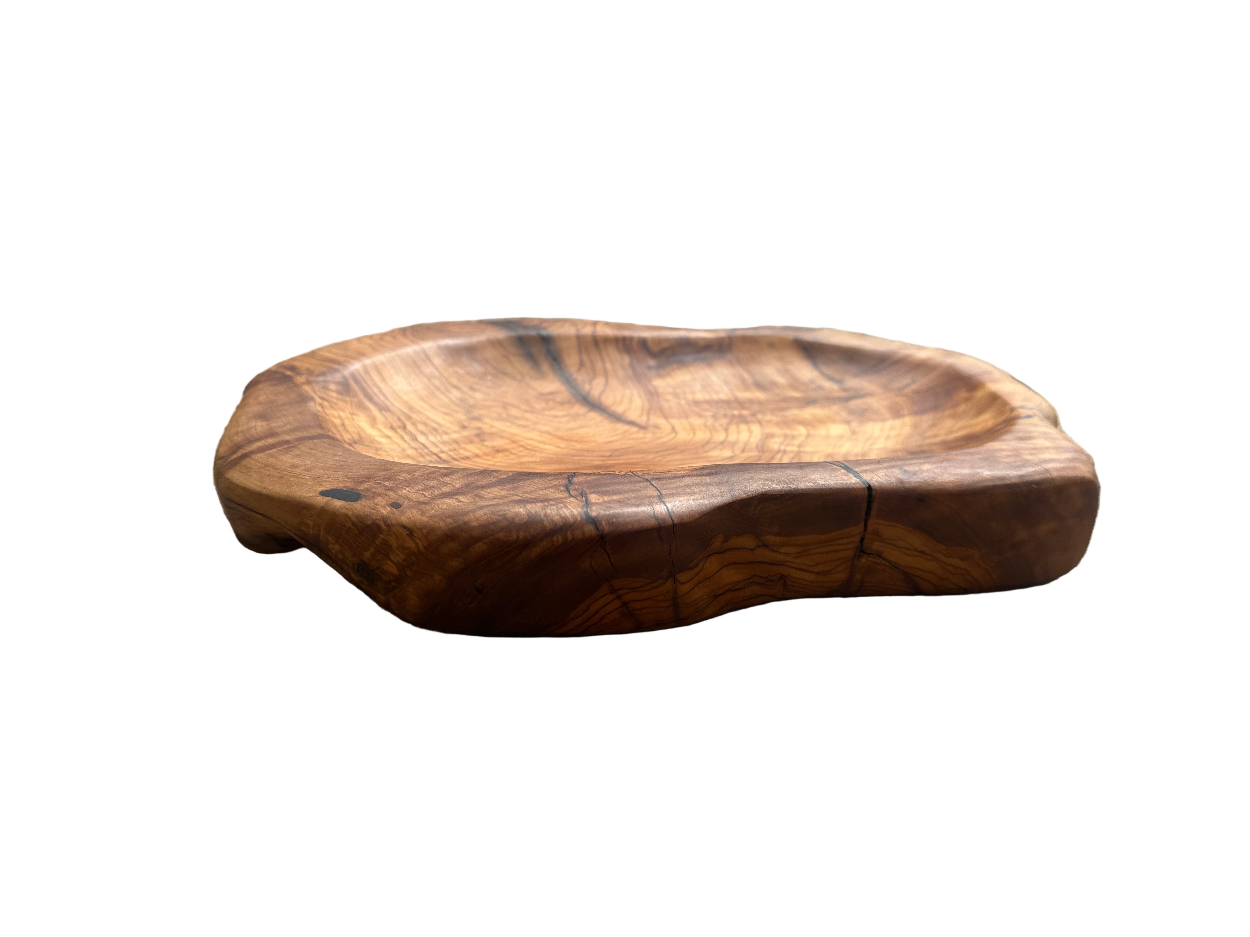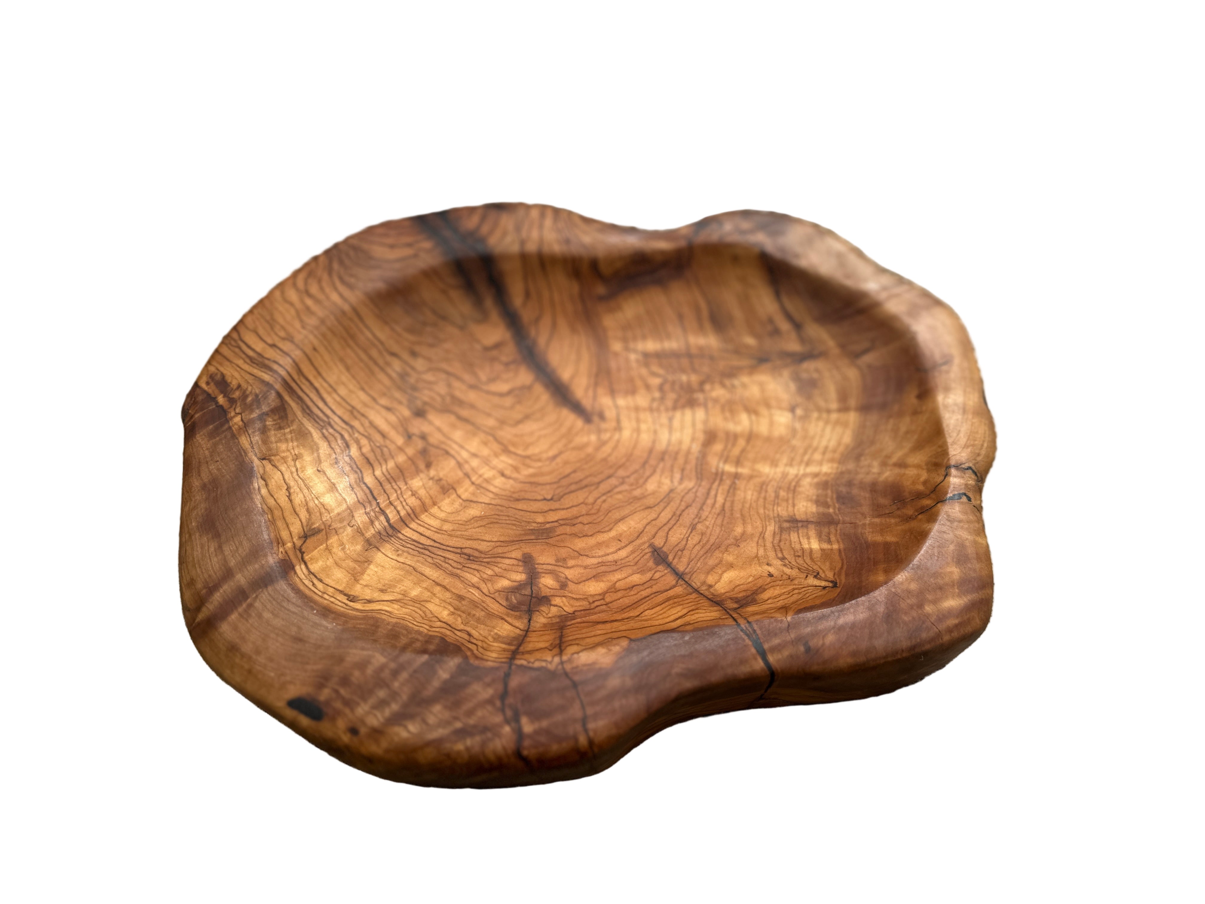Beautiful olive wood bowl/tray crafted in Birzeit from a single piece of wood to ensure durability, with a smooth finish handmade in Palestine.
