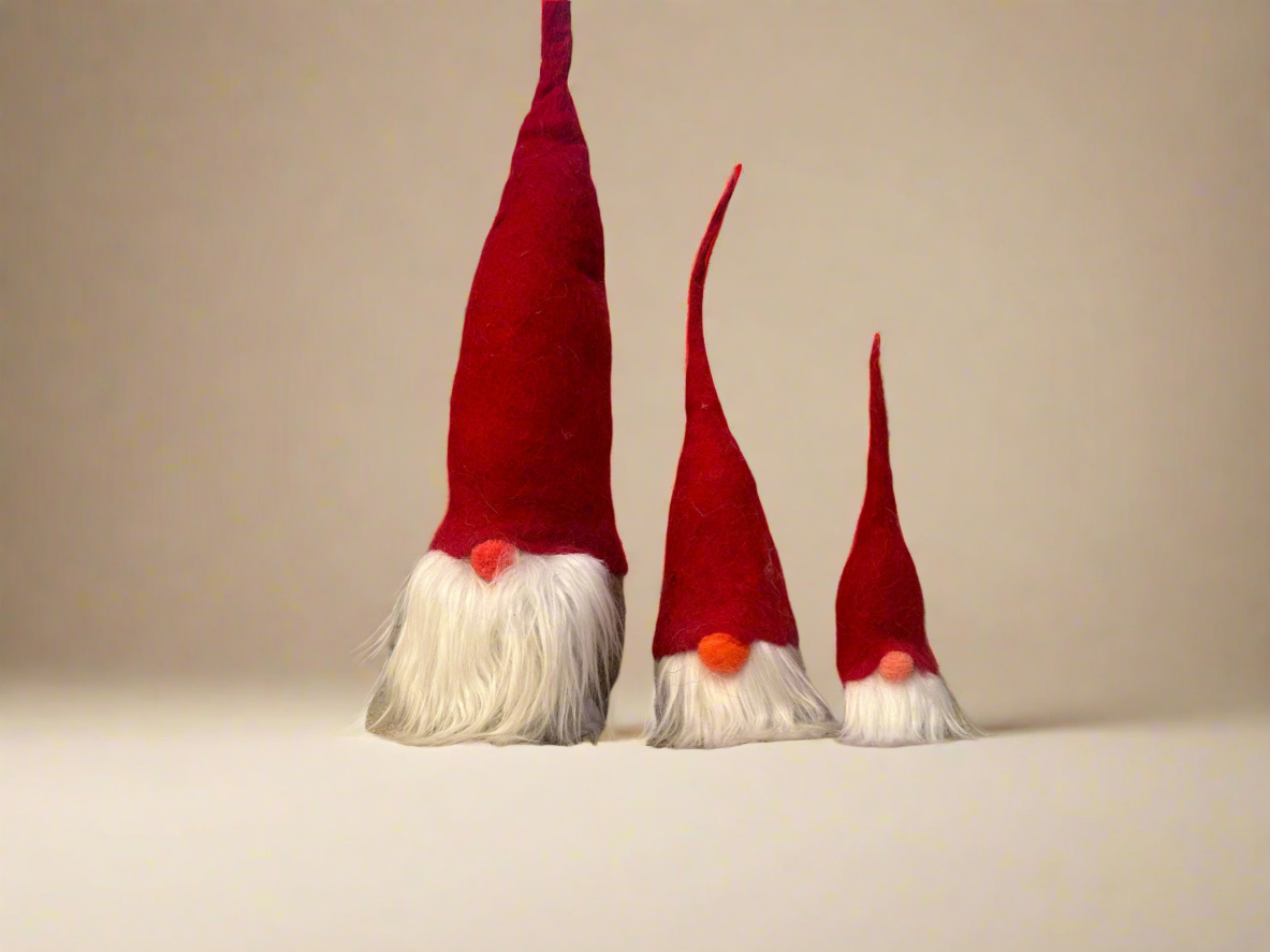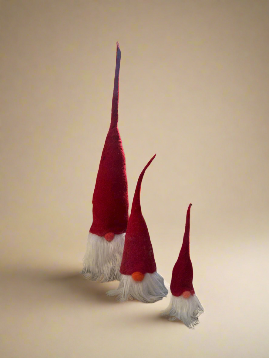 Handmade 100% natural sheep wool Santa gnomes sourced from a local shepherdess.