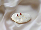 Gold plated Arabic calligraphy earrings with natural stone inlay.
