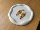 Handmade in Palestine, these elegant gold-plated earrings feature the protective Khamsa symbol and a colorful bead accent. Lightweight with a delicate drop design, they blend tradition and charm in every detail.