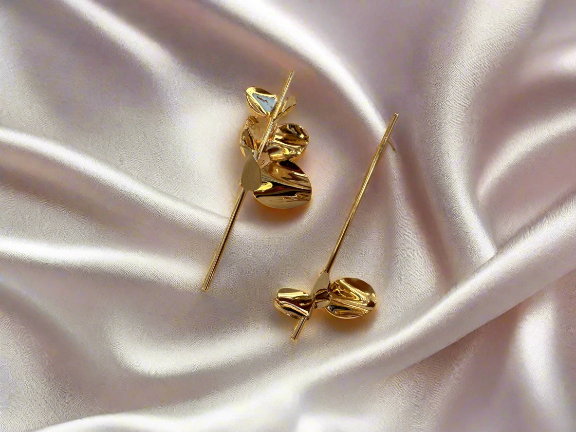 Each earring is meticulously shaped to resemble the soft curves of petals, creating a graceful and organic aesthetic. Whether worn for a special occasion or as an everyday accent, elevate your jewelry collection with a piece that is as one-of-a-kind as you are.