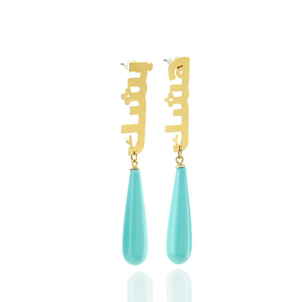 Arabic Calligraphy Turquoise Gold Earrings