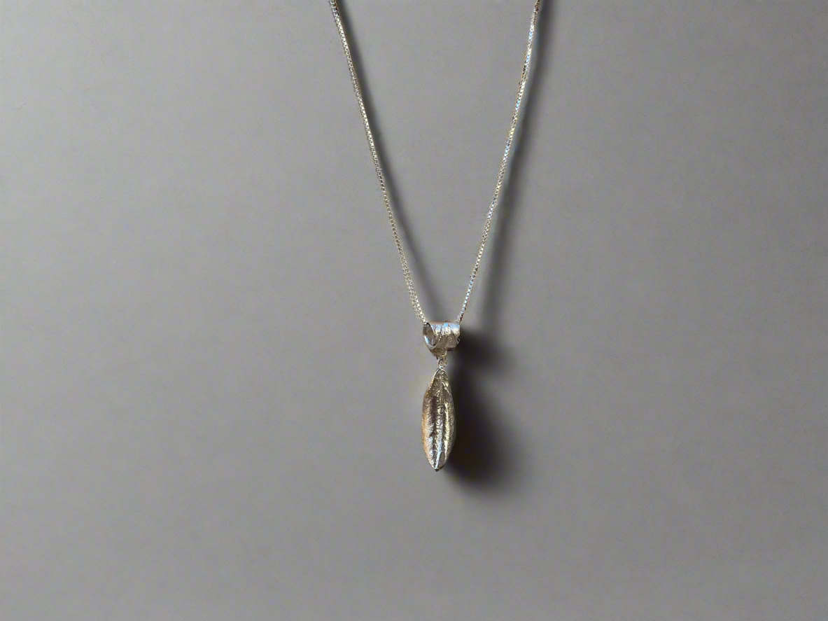 Luxurious handmade silver necklace, exquisitely crafted from two delicate leaves by the esteemed Palestinian jewelry designer Nadia Abu Ghattas. A native of Beit Jala, Bethlehem, her pieces draw inspiration from the iconic Palestinian olive tree, which for Nadia represents steadfastness and resilience.
