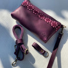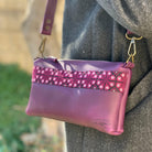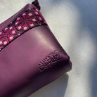 Purple embroidered crossbody leather bag