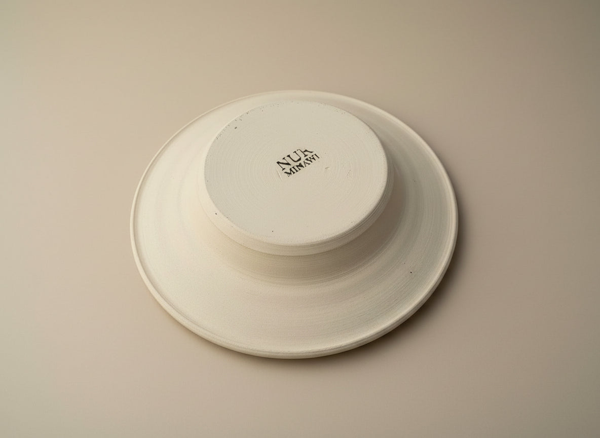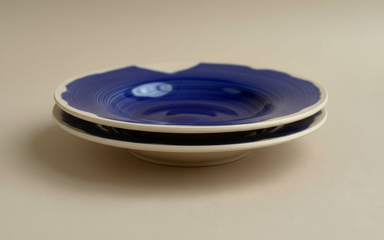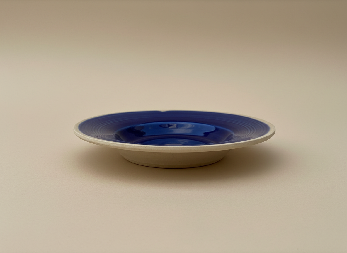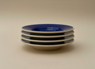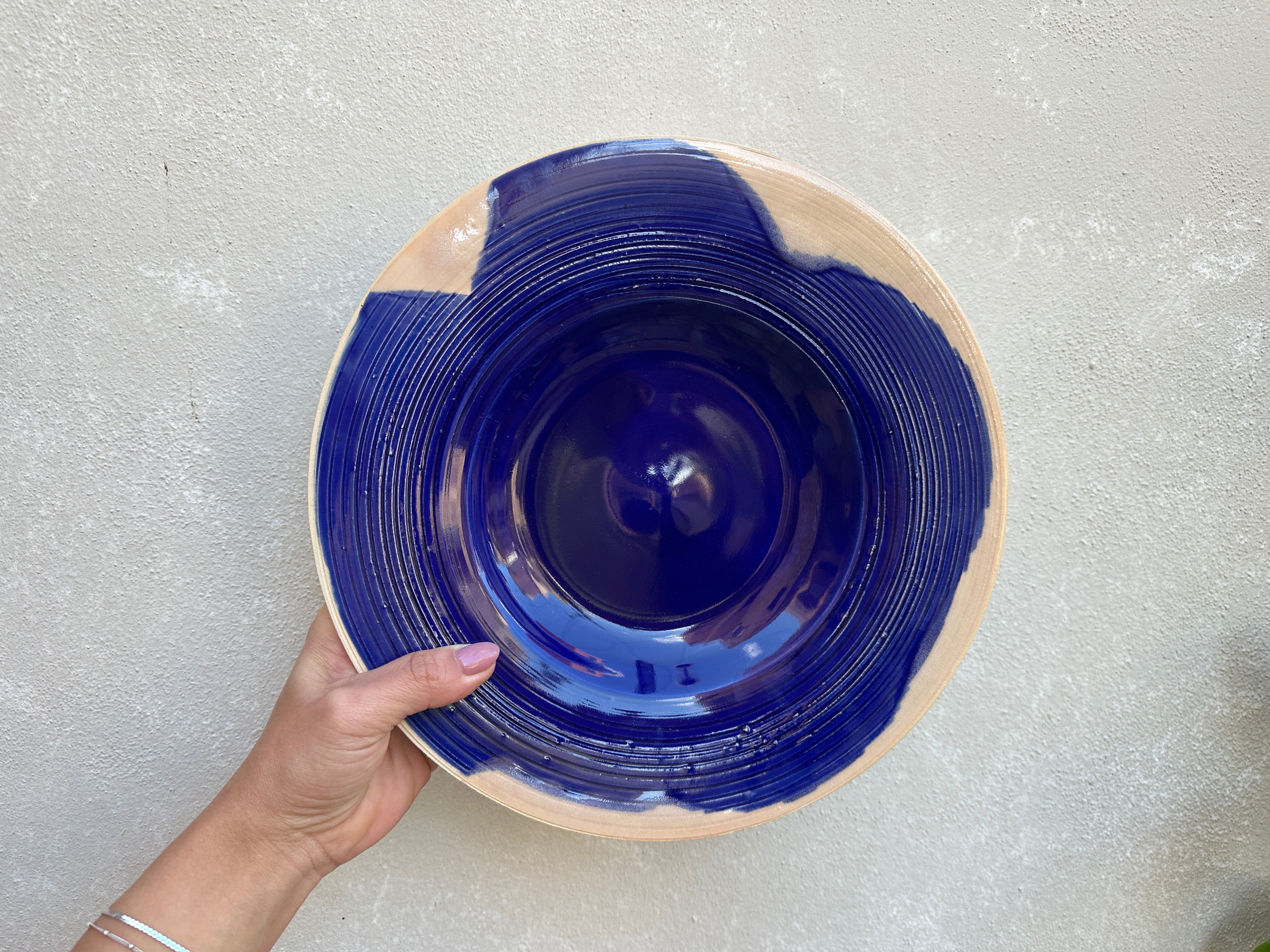 Stoneware white ceramic serving dish with a vibrant asymmetric cobalt blue glaze by 3rd generation Palestinian ceramicist, Nur Minawi.