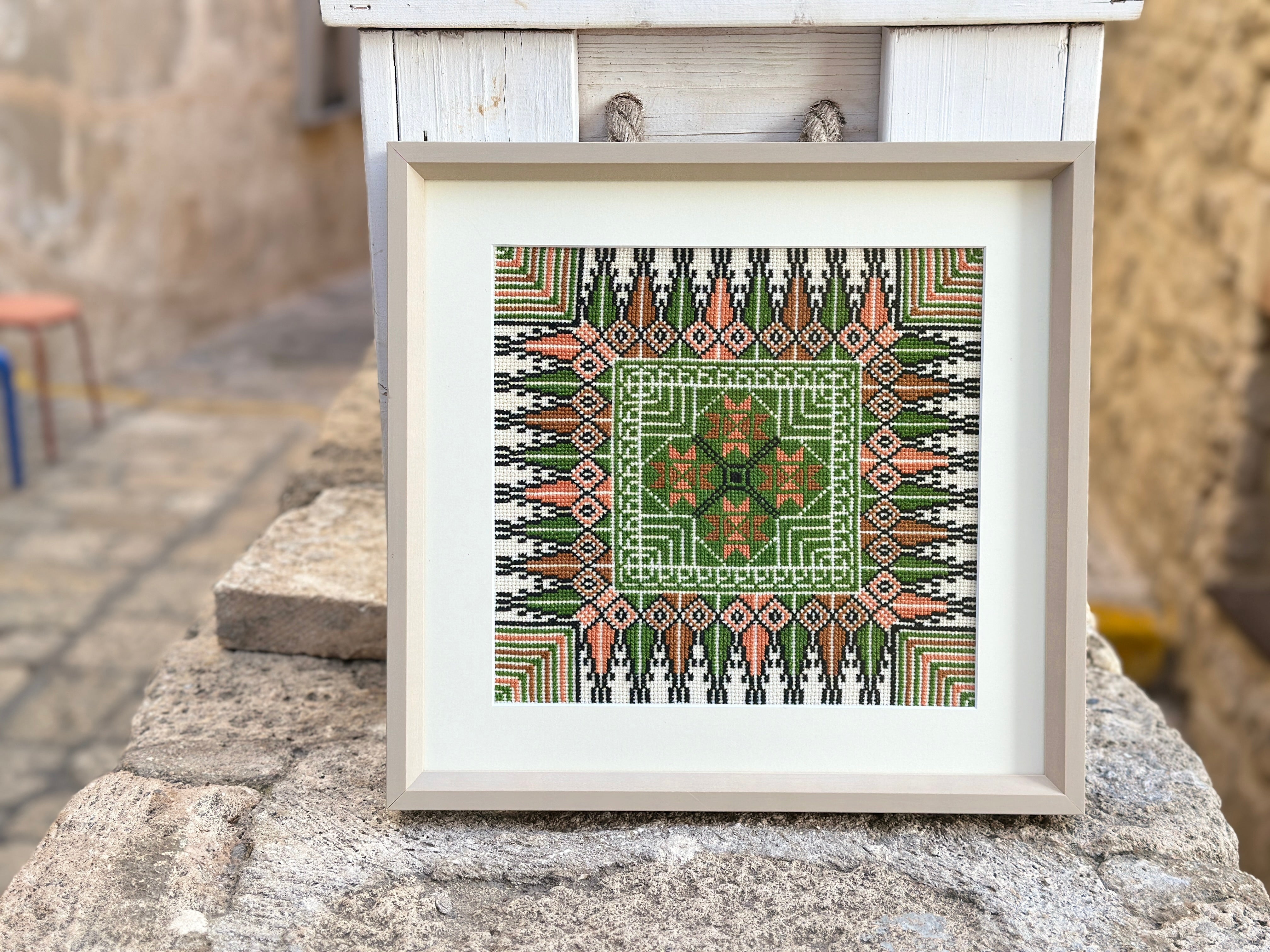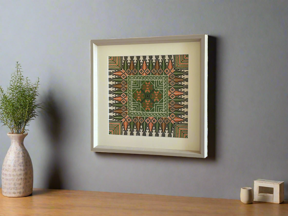 Framed Hand Embroidered Tatreez - Green