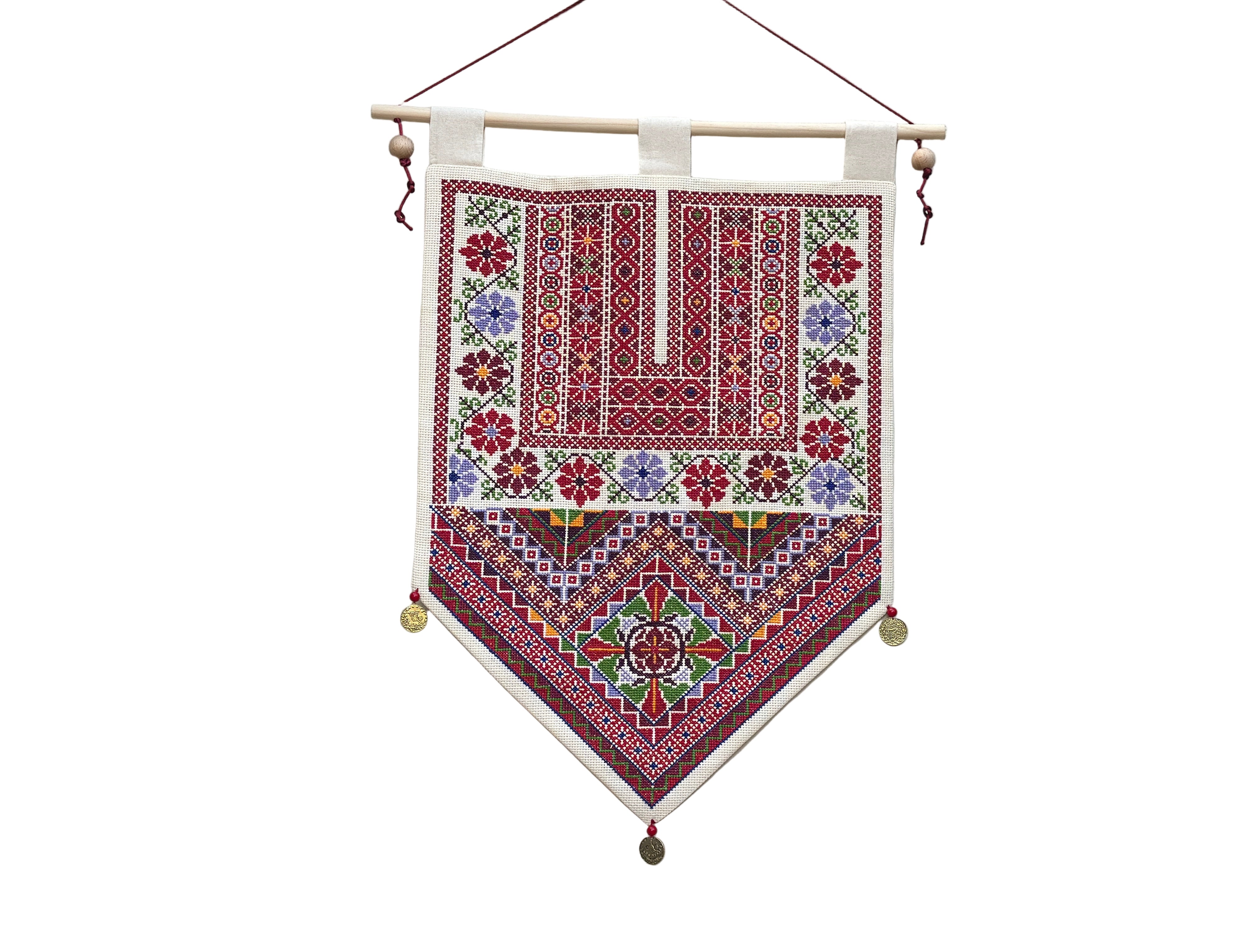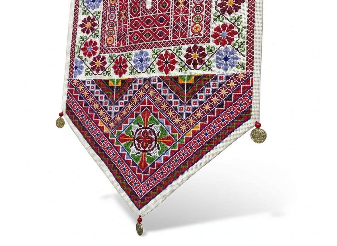 Bring warmth, color, and cultural artistry into your home with this hand-embroidered wall hanging. Each piece is meticulously crafted by skilled women artisans in Ramallah, using vibrant threads that create striking patterns and add an instant touch of brightness to any wall or living space.