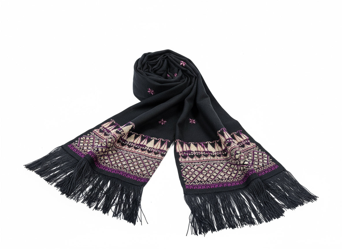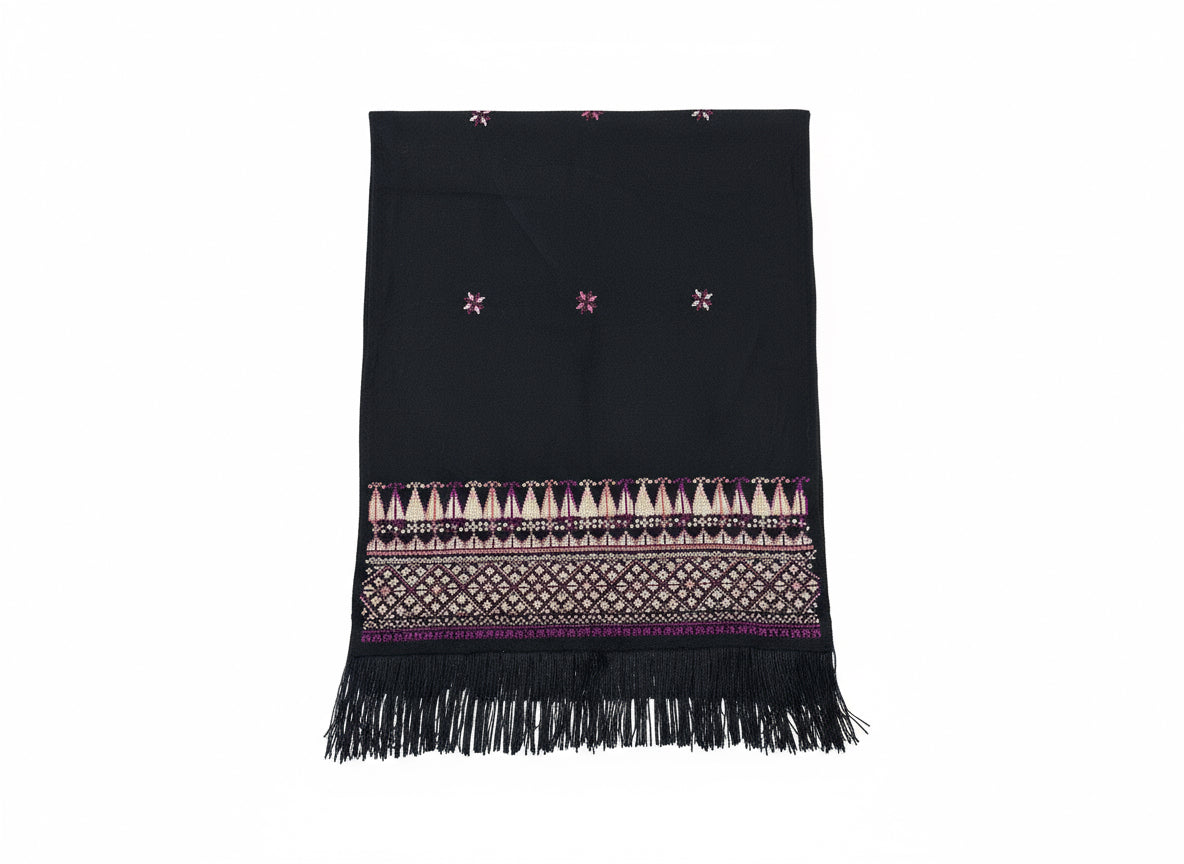 Hand Embroidered Beige Shawl - Black/Purple