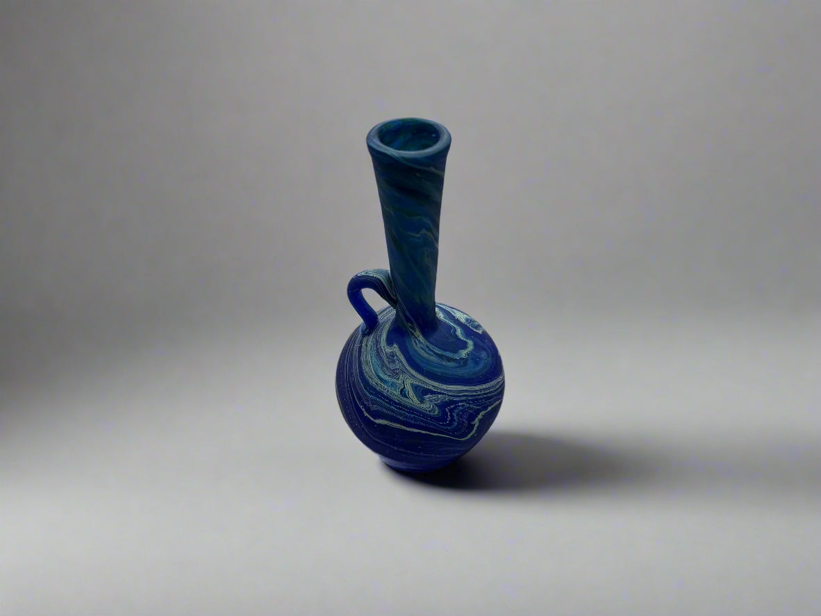 Handblown Hebron Phoenician Glass Mini Vase with handle - Cobalt Blue